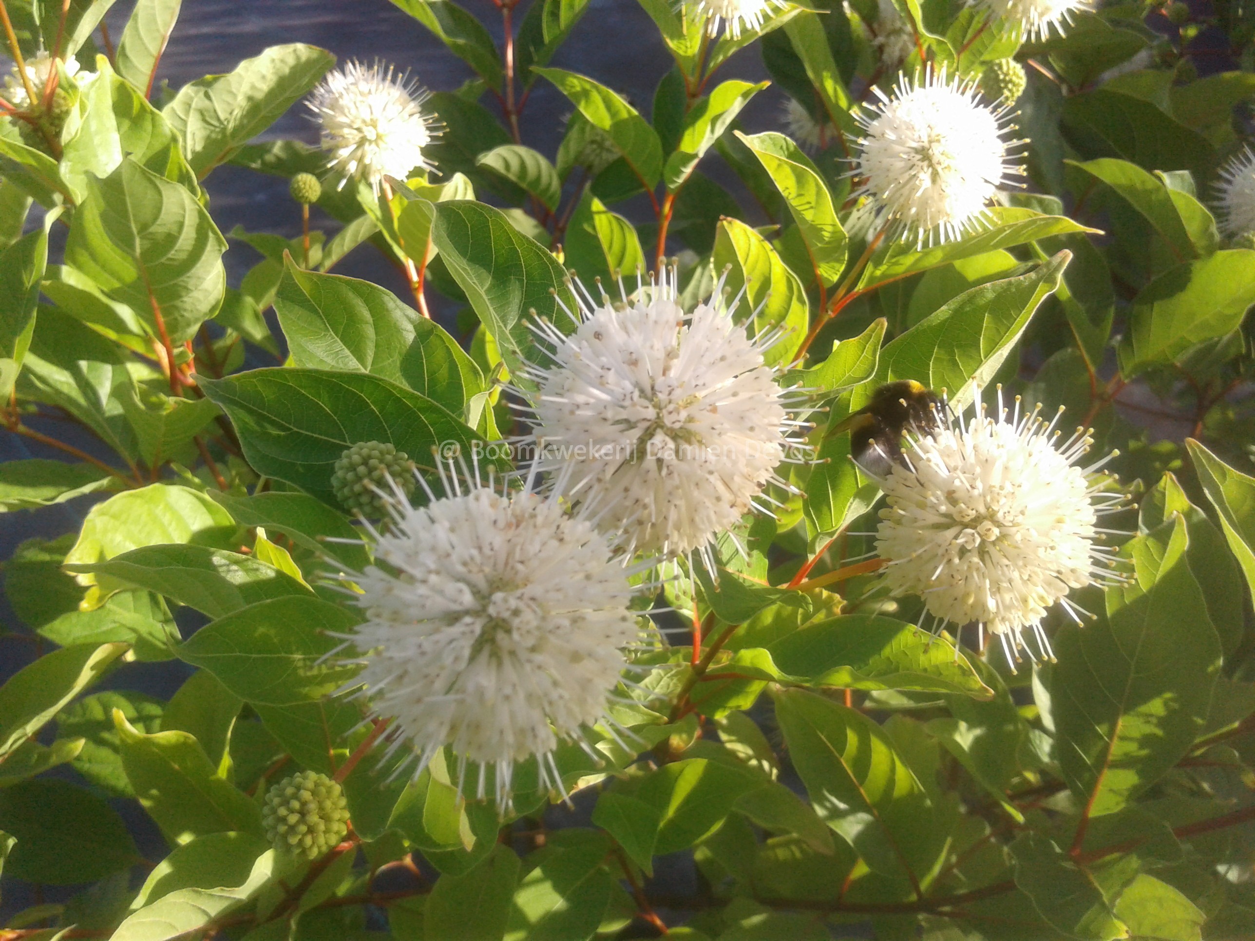 Cephalanthus occidentalis s'accommode très bien d'un sol humide et pousse de 1,5 à 2 mètres de haut et de large.