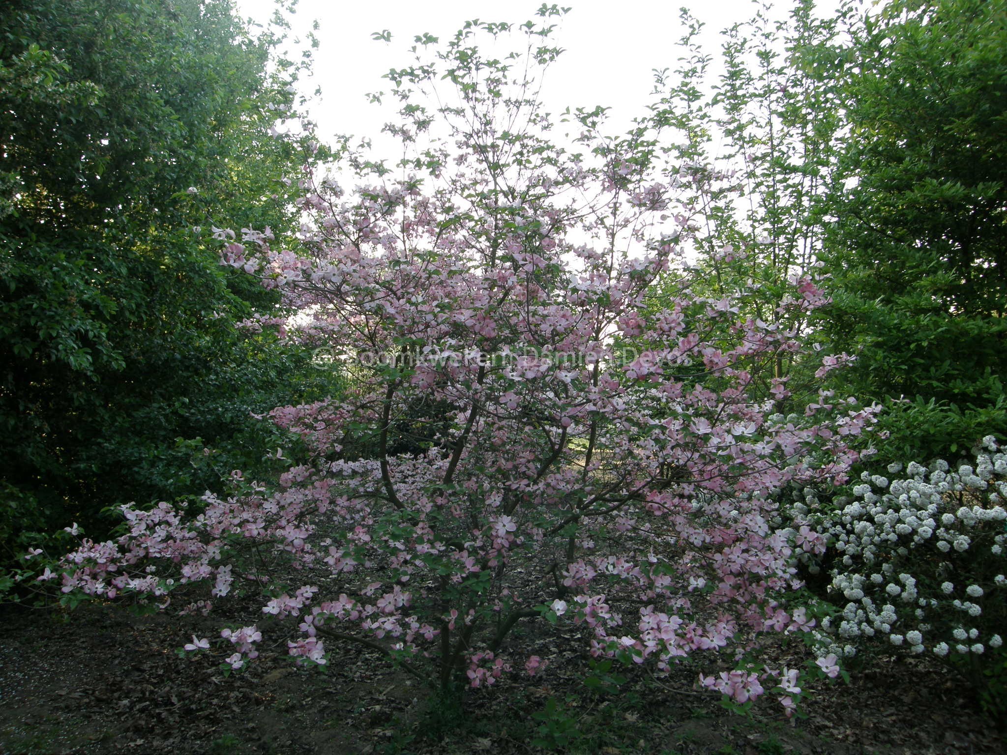 Bel arbuste de 4m de hauteur et 4m de largeur étagé se couvrent en avril (mai) de grandes bractées blanches-roses foncées.