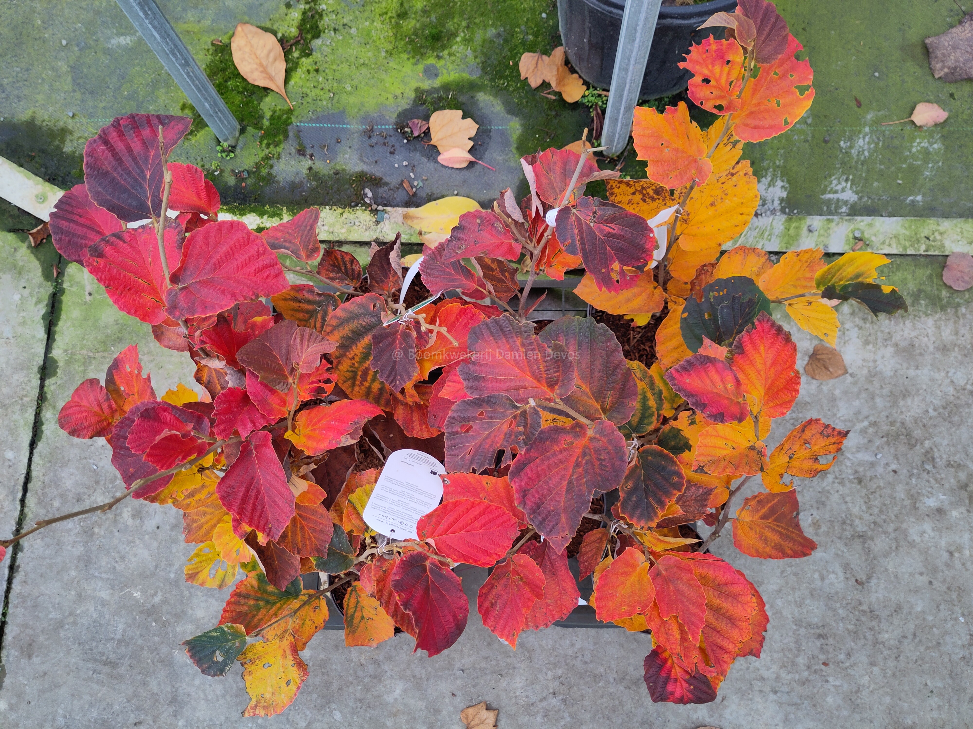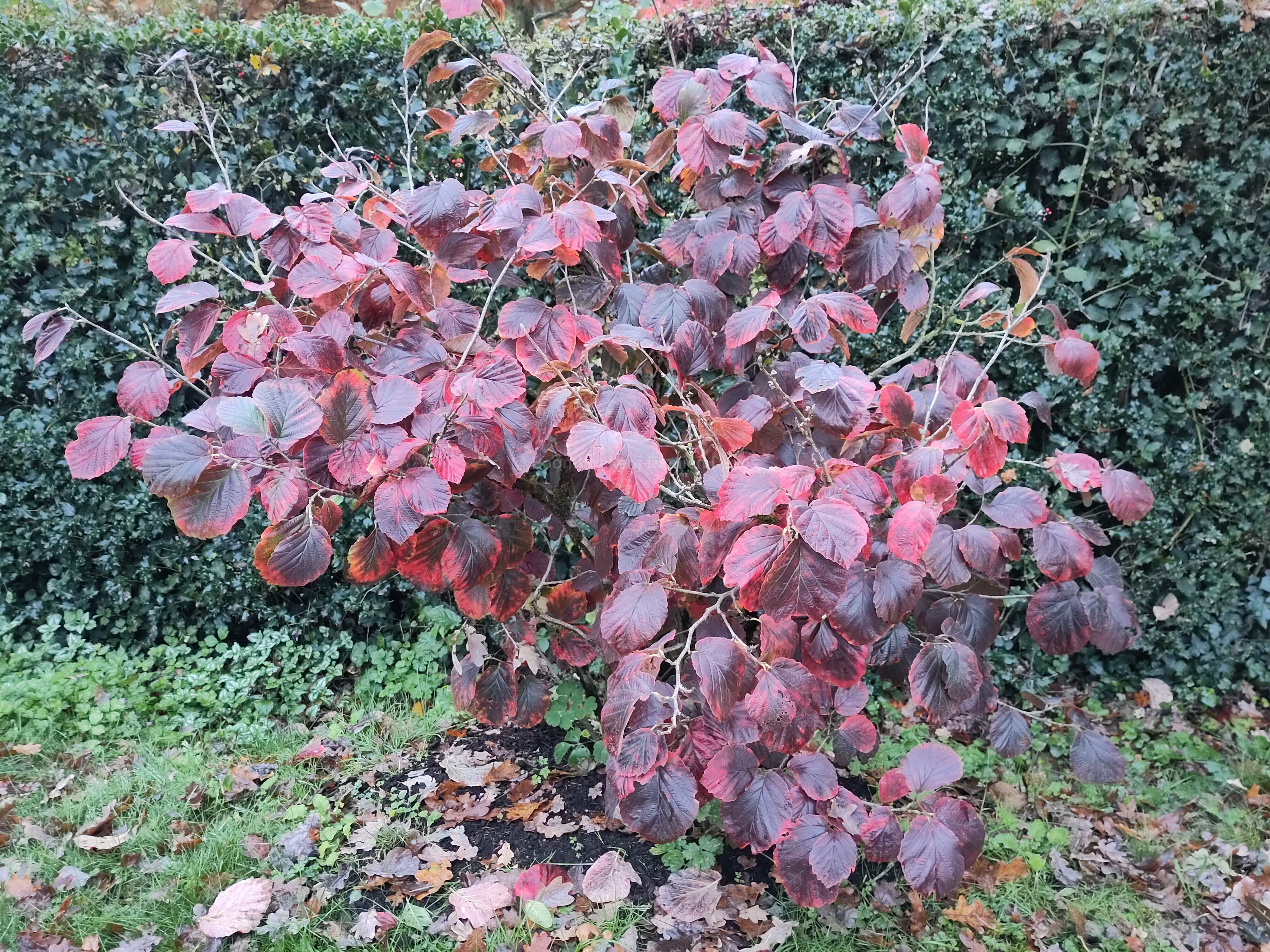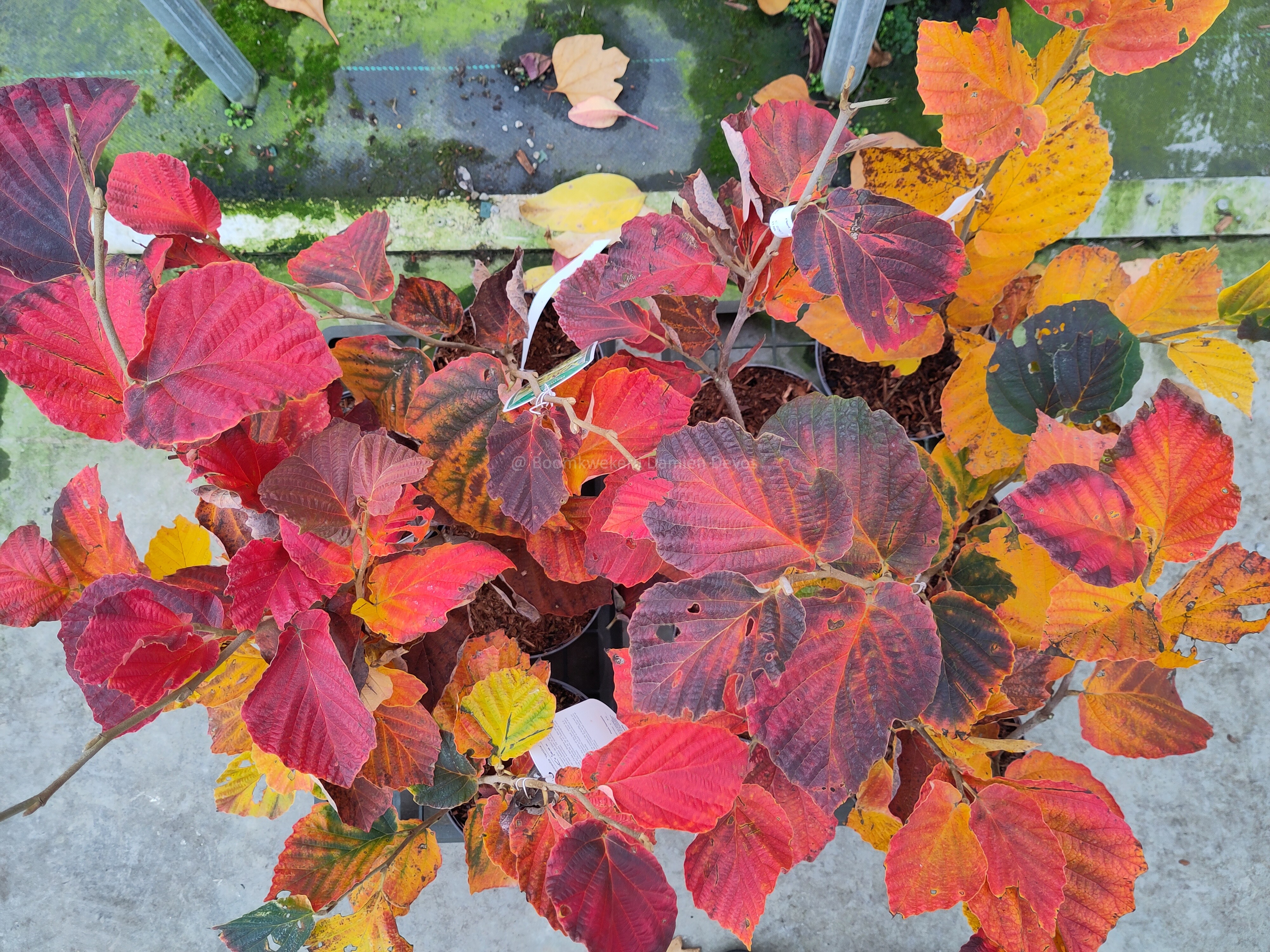 Il se distingue des autres hamamélis par ses belles feuilles pourpres, qui deviennent rouge-orange-jaune en automne.