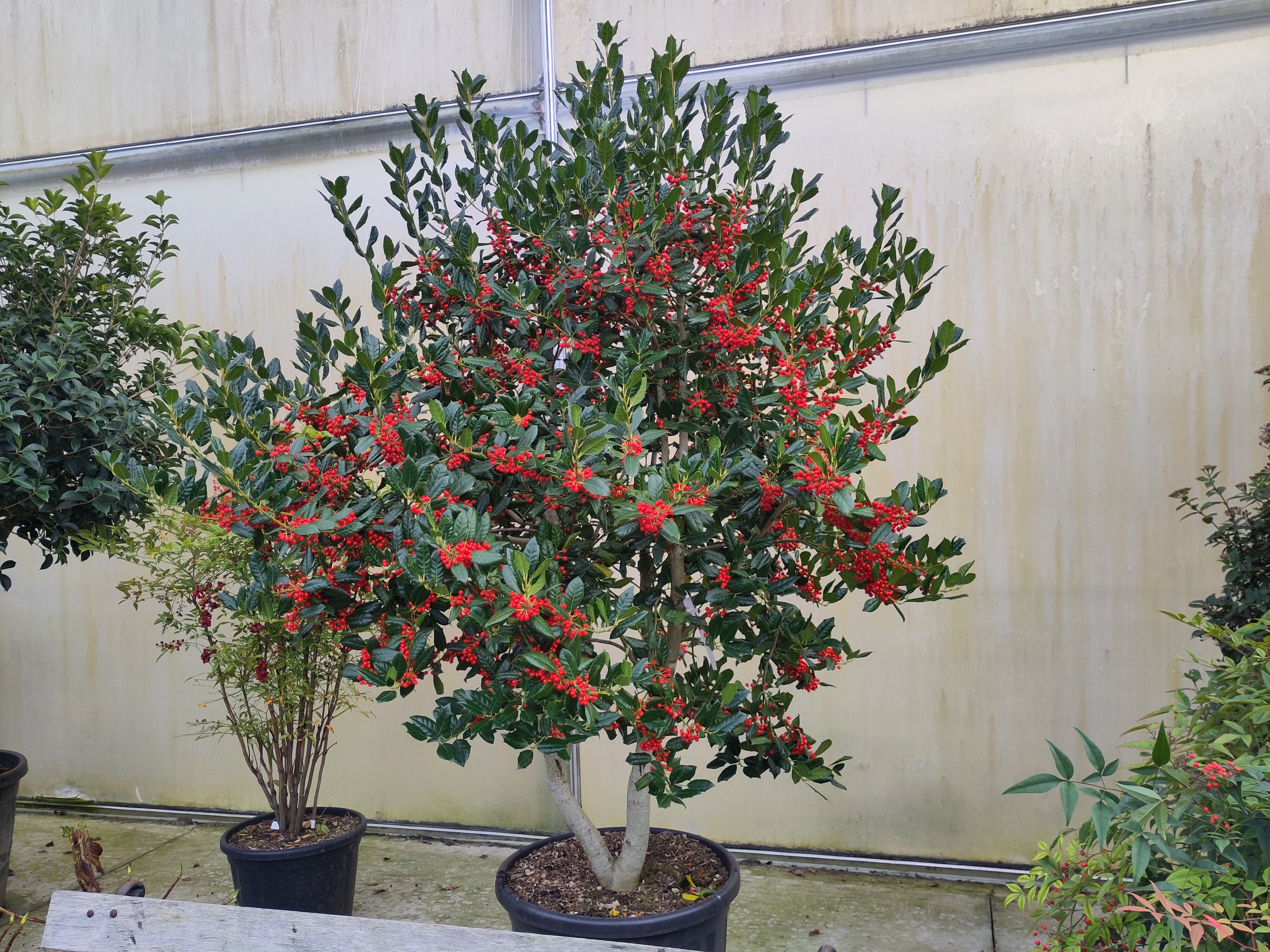 est un houx persistant au port pyramidal vigoureux et dressé et au feuillage dense, brillant et vert foncé. Il fleurit au printemps avec de petites fleurs blanches discrètes, attirant les abeilles. La floraison est suivie de nombreuses baies rouges vives, souvent présentes jusqu’en plein hiver, très prisées par les oiseaux. Très rustique et facile d’entretien.