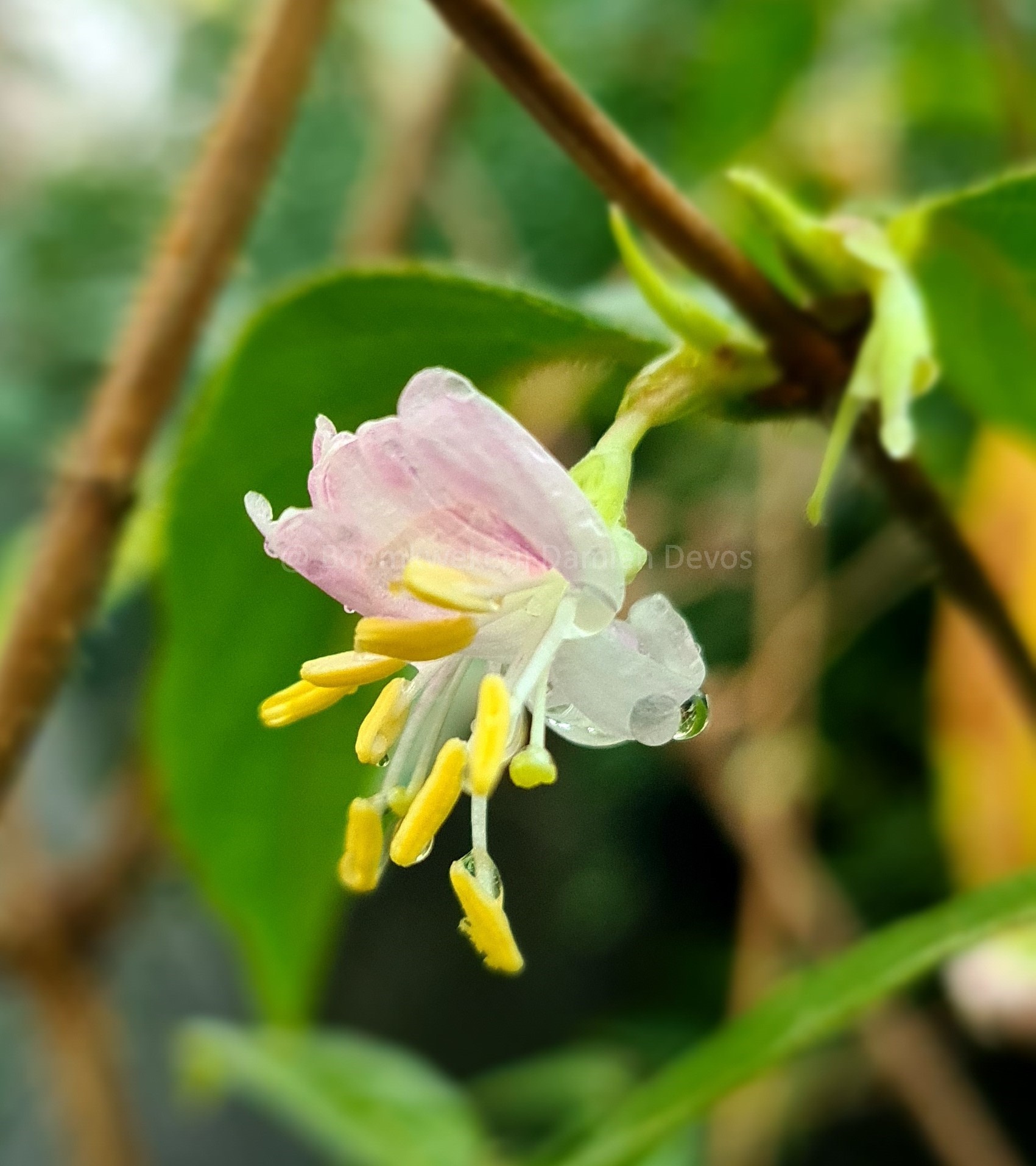 Il fleurit avec des fleurs blanches teintées de rose en janvier, février et mars et préfère un endroit ensoleillé dans le jardin.
