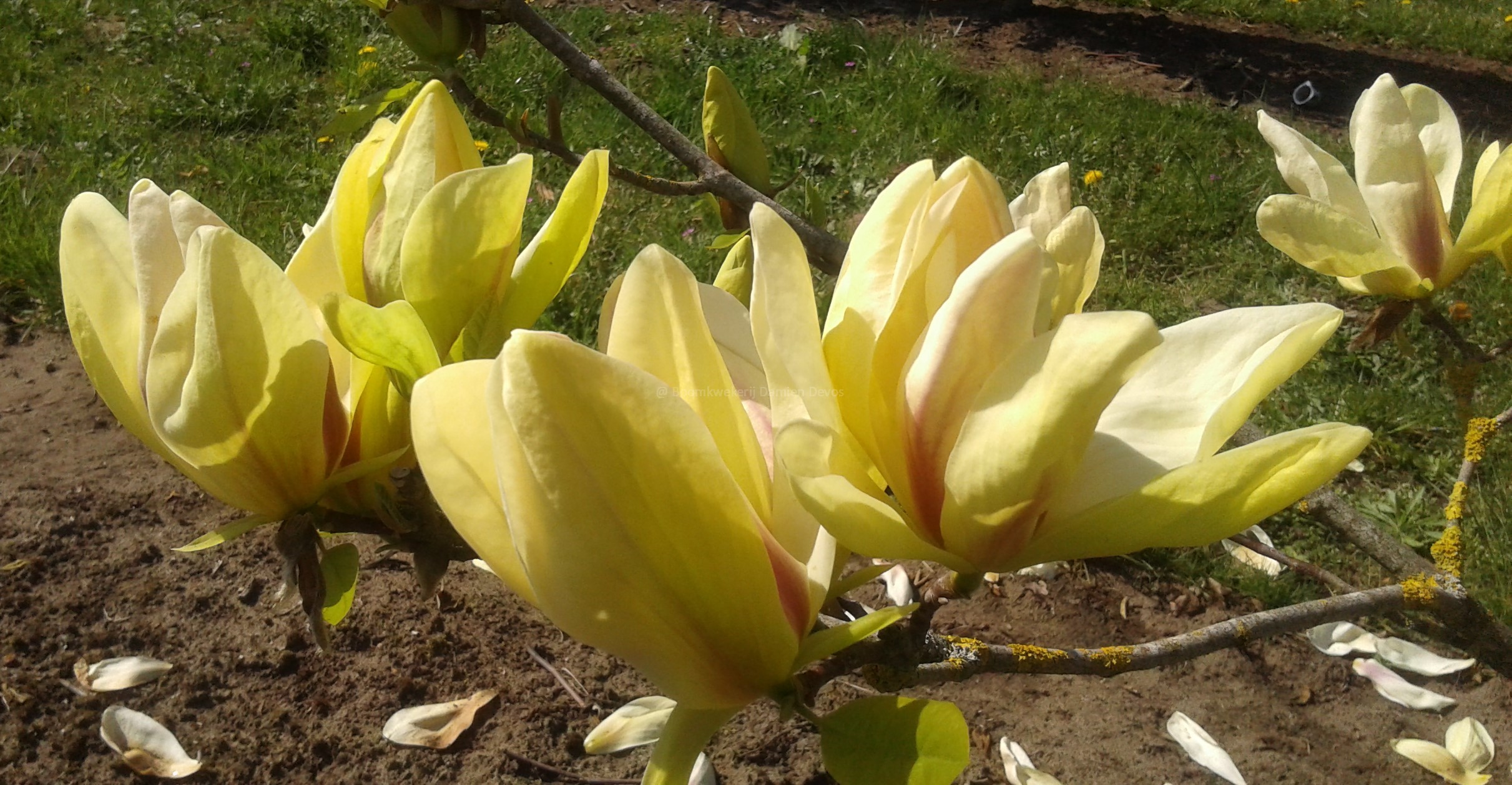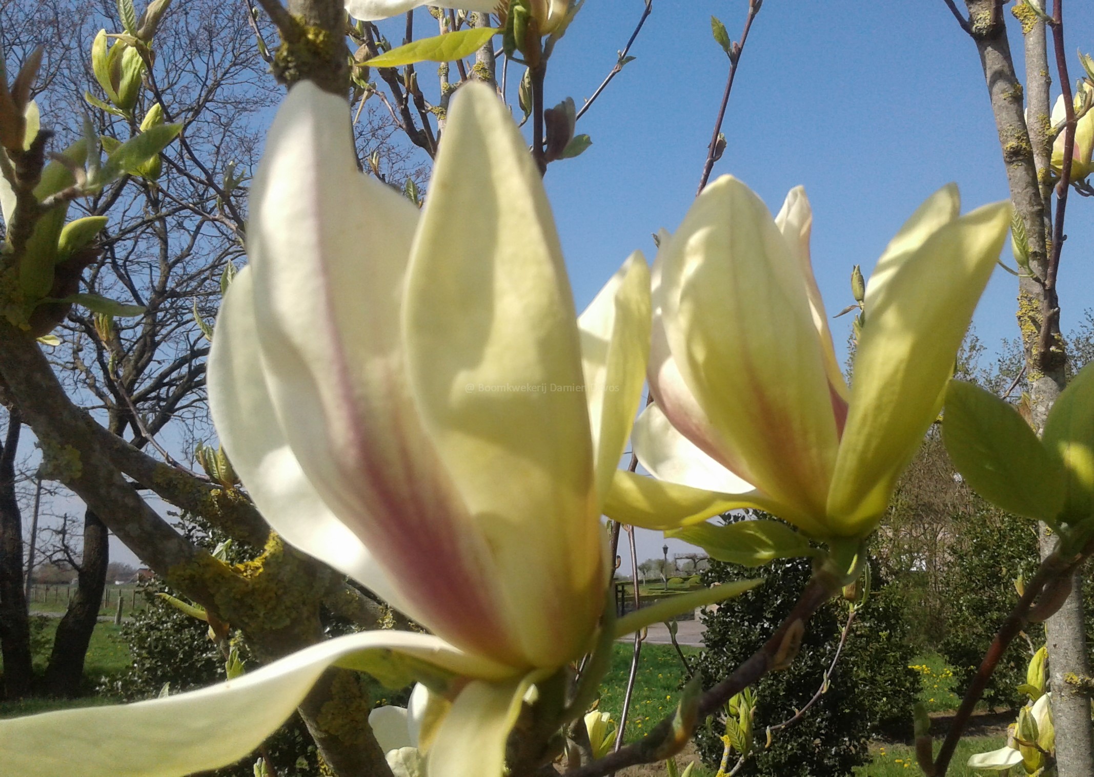 Magnolia 'Banana Split' (x) grootbloemig, geel met roze aanzet