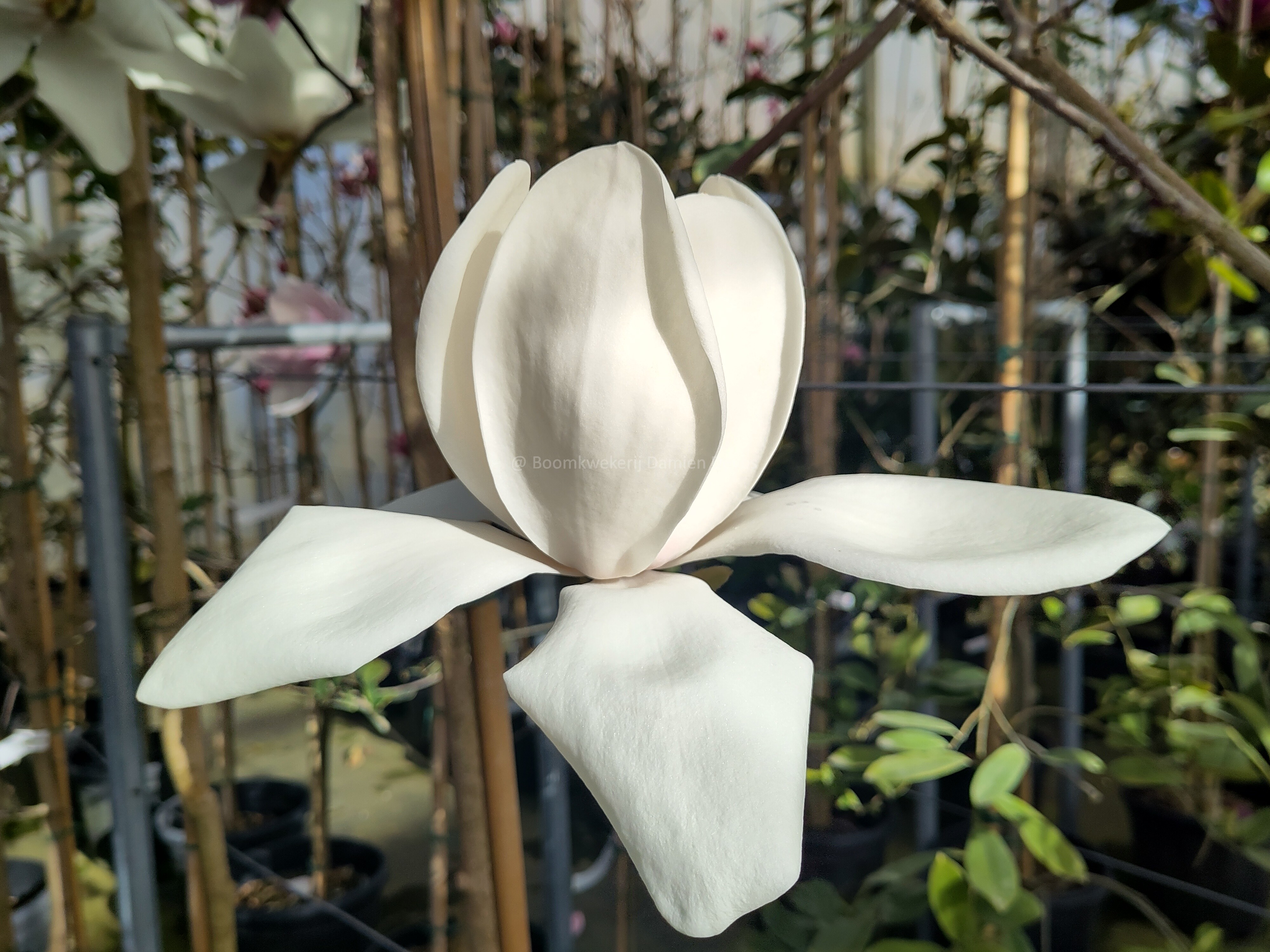 Magnolia ‘David Clulow’ est un arbre caduc de taille moyenne, avec de grandes fleurs blanches en forme de coupe, qui apparaissent à la fin du printemps. Apprécié des abeilles.