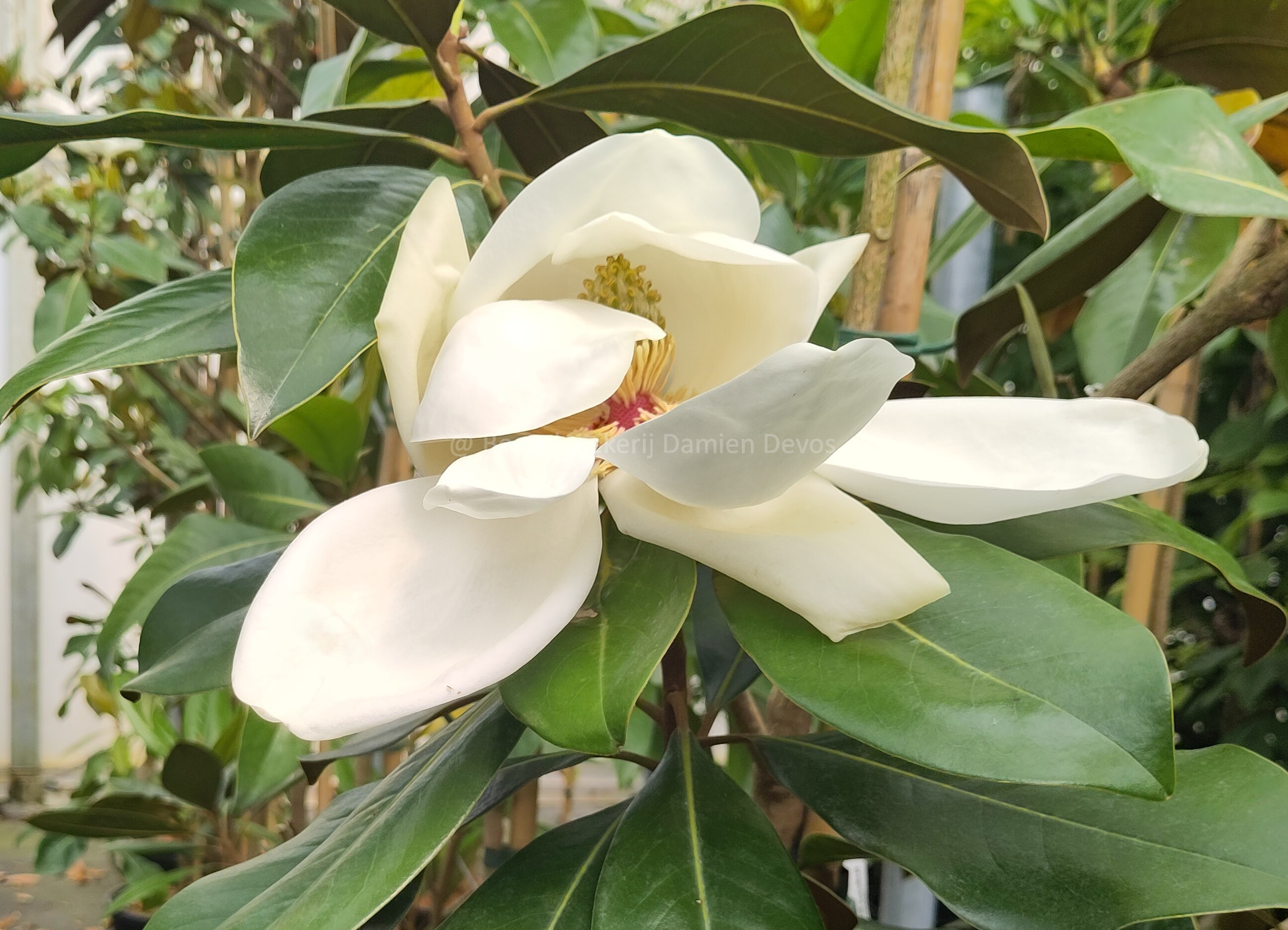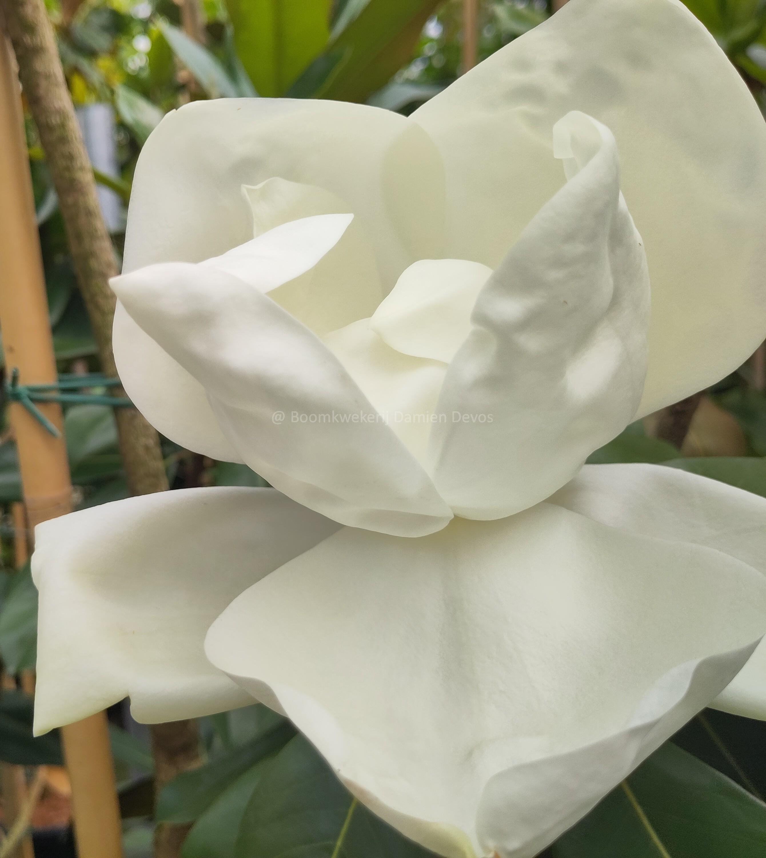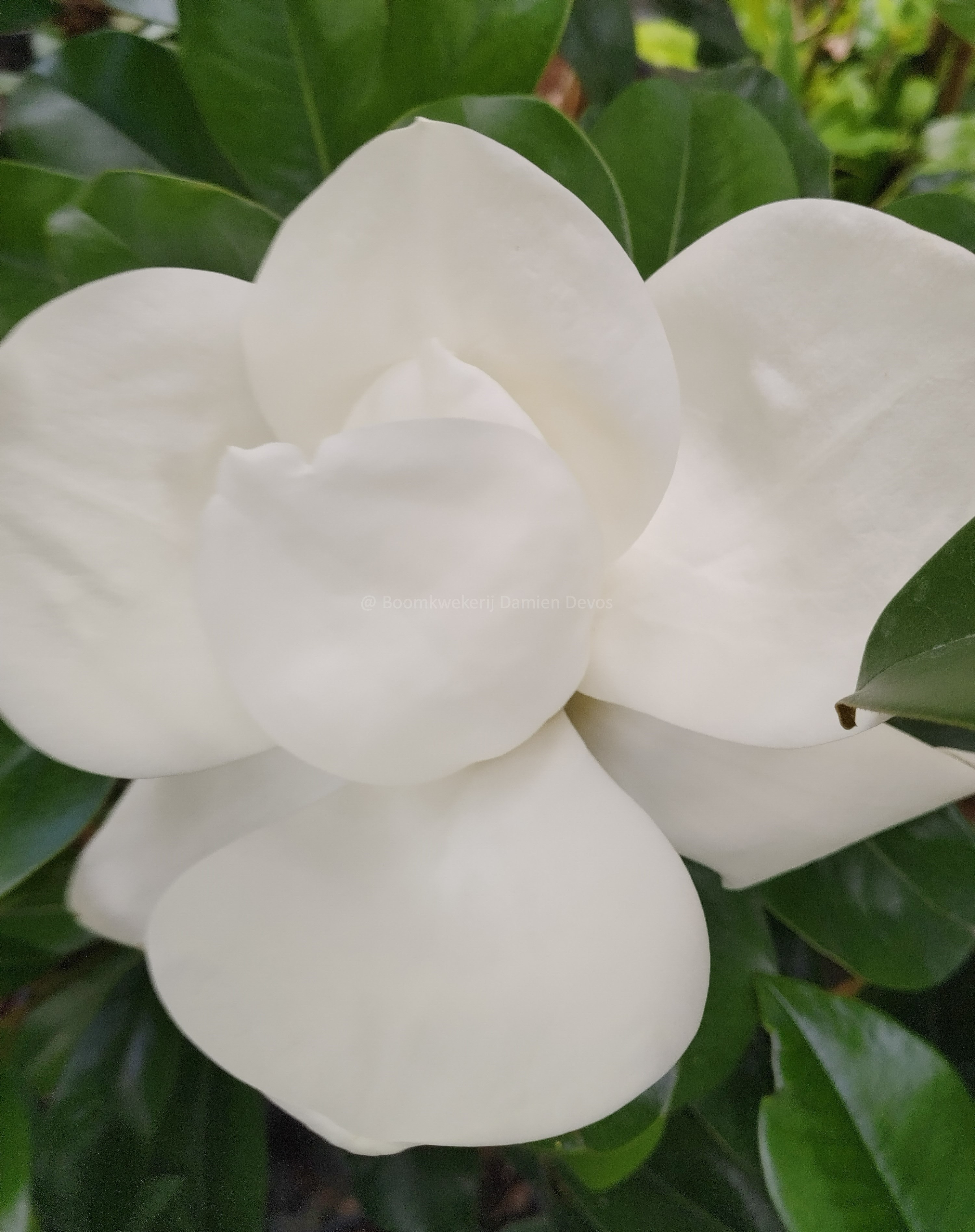 Magnolia grandiflora 'Double Nantais' est connu pour ses grandes fleurs blanches, fortement parfumées, qui sont souvent à moitié remplies.