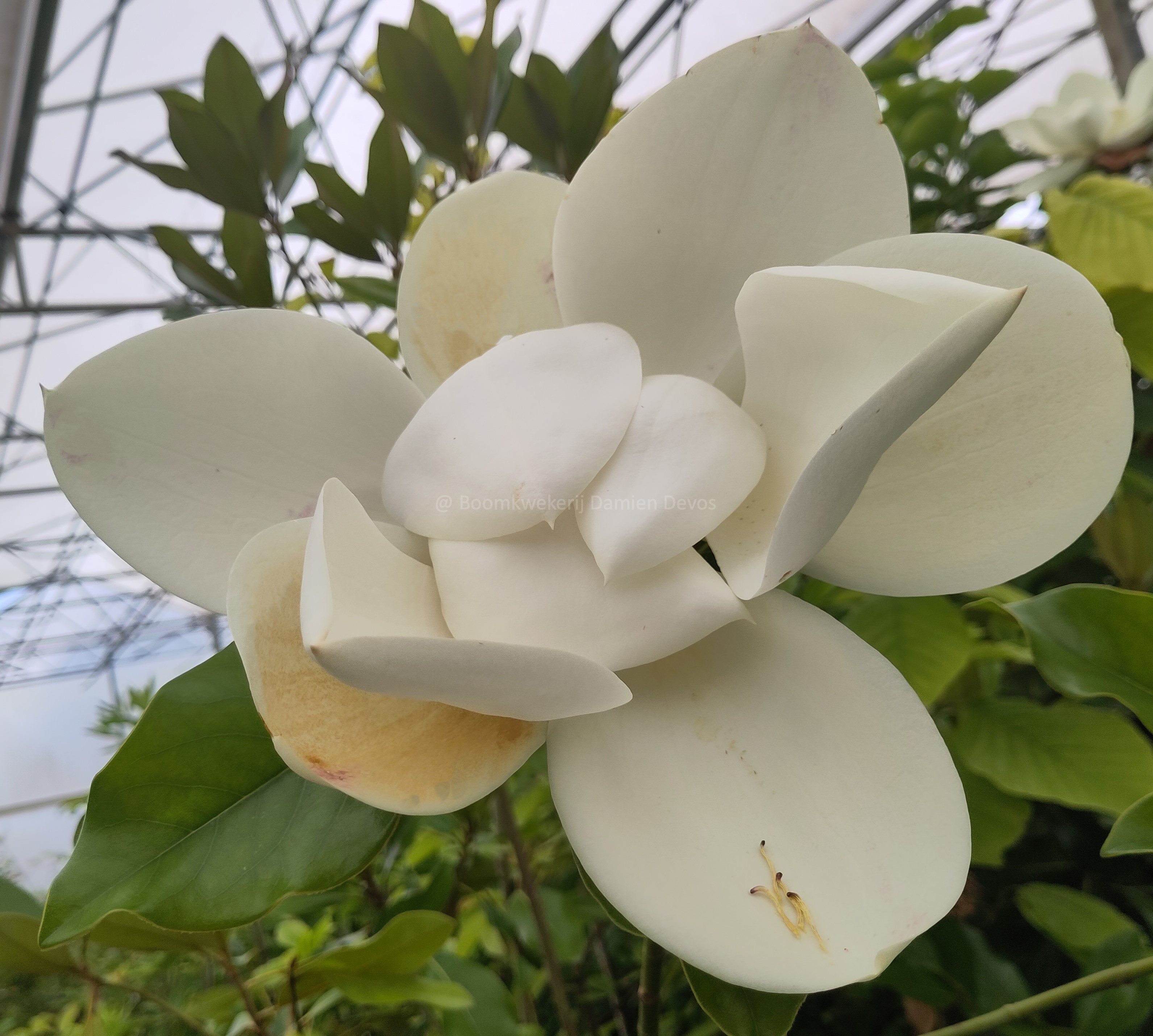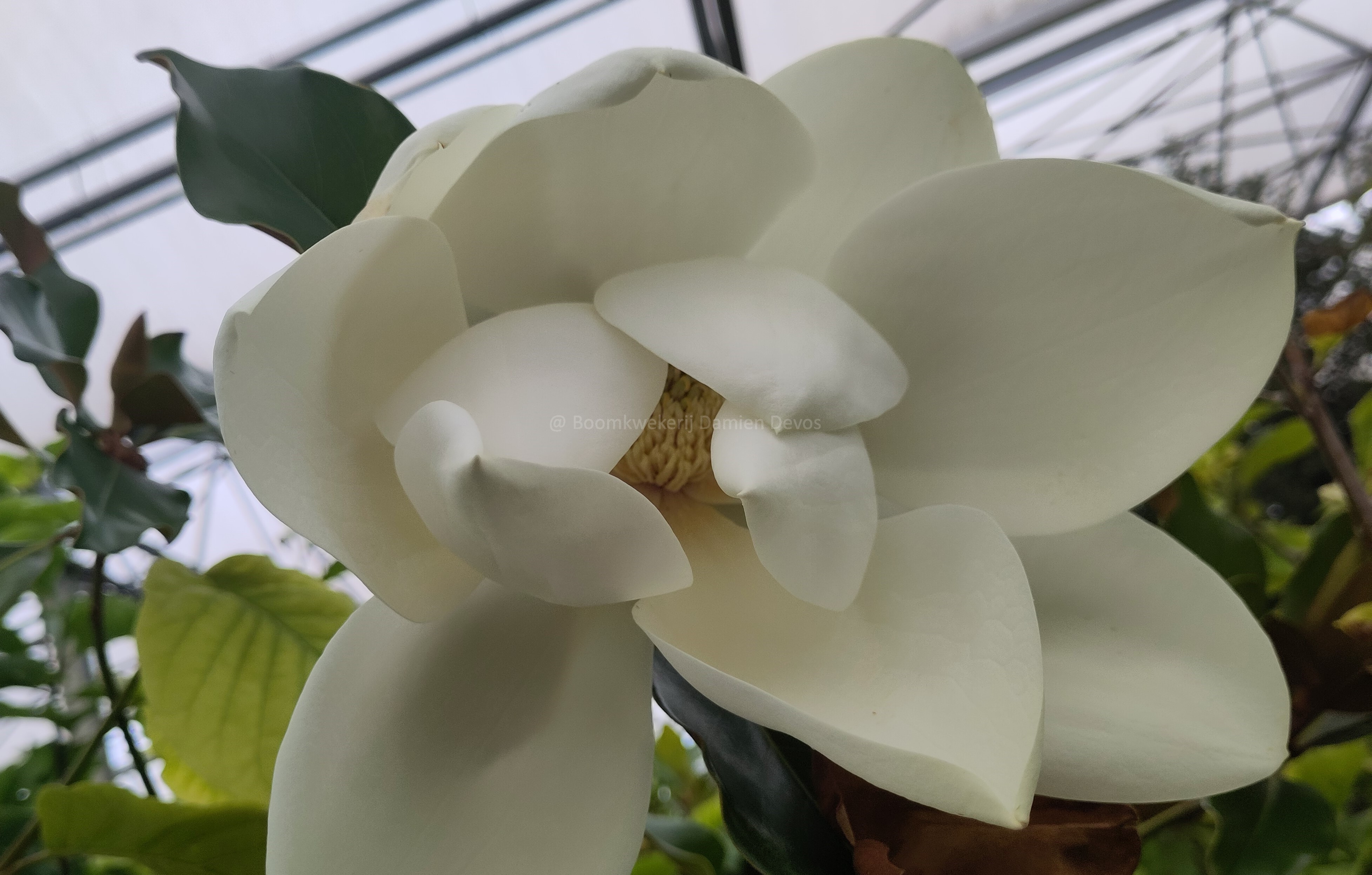 Le Magnolia grandiflora 'Samuel Sommer' est une sélection rustique avec de grandes fleurs blanches parfumées.