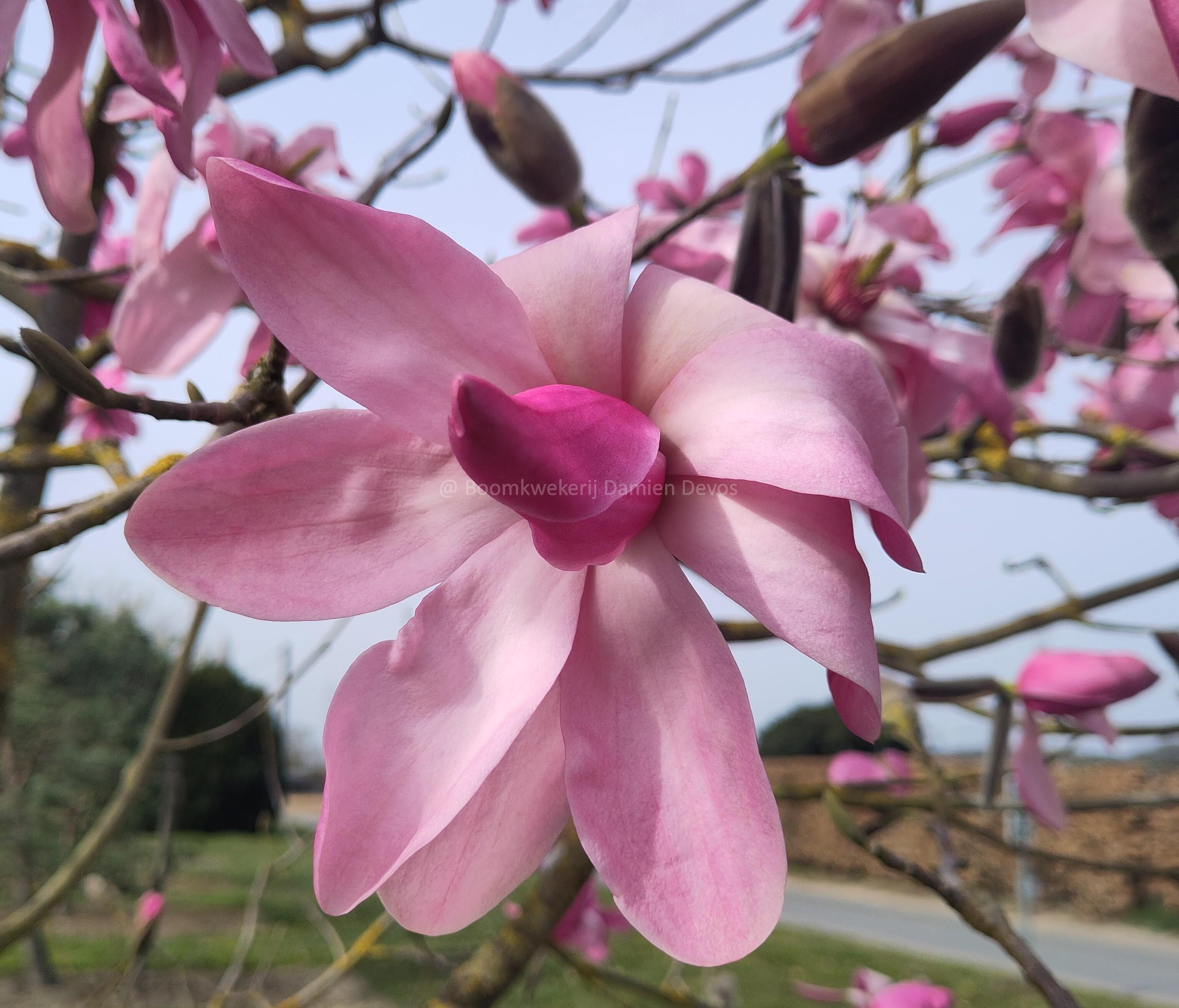 Magnolia 'Purple Breeze' fleurit très tôt (en mars - début avril) et en abondance avec des grandes fleurs roses. Les fleurs sont magnifiques et ont 12 tépales qui bougent un peu avec le vent.