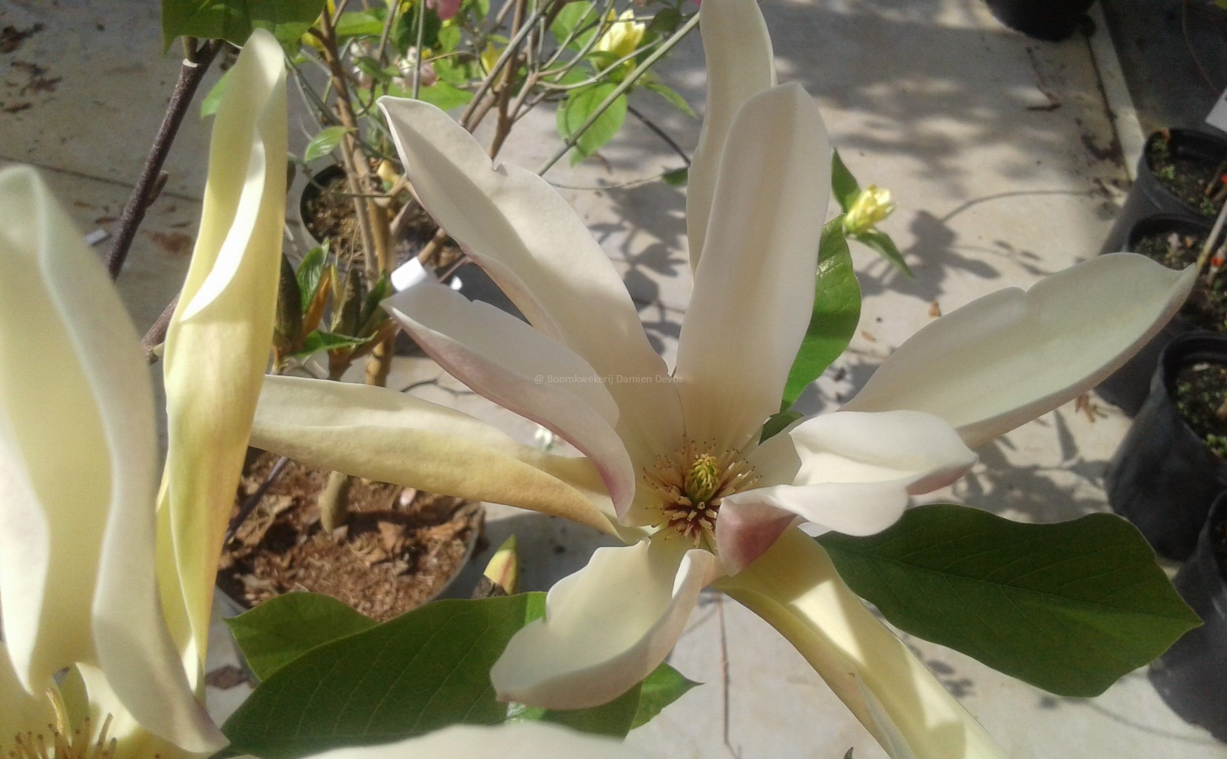 Le Magnolia 'Sun Sprite' est issu d'un croisement entre le Magnolia brooklynensis 'Woodsman' et le Magnolia 'Elizabeth'. De grandes fleurs en forme de vase apparaissent sur la plante au printemps. Les fleurs blanches, de couleur crème, ont des nuances de rose à l'extérieur des pétales. La plante préfère le soleil ou la mi-ombre.