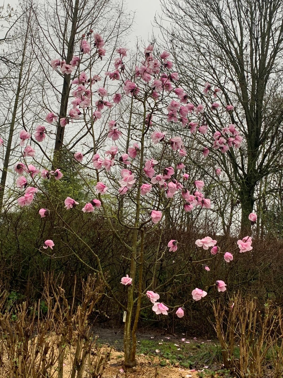 Au début du printemps, de grandes fleurs roses apparaissent sur le bois nu, ce qui rend la plante très attrayante. La plante pousse de préférence au soleil ou à la mi-ombre sur un sol bien drainé.