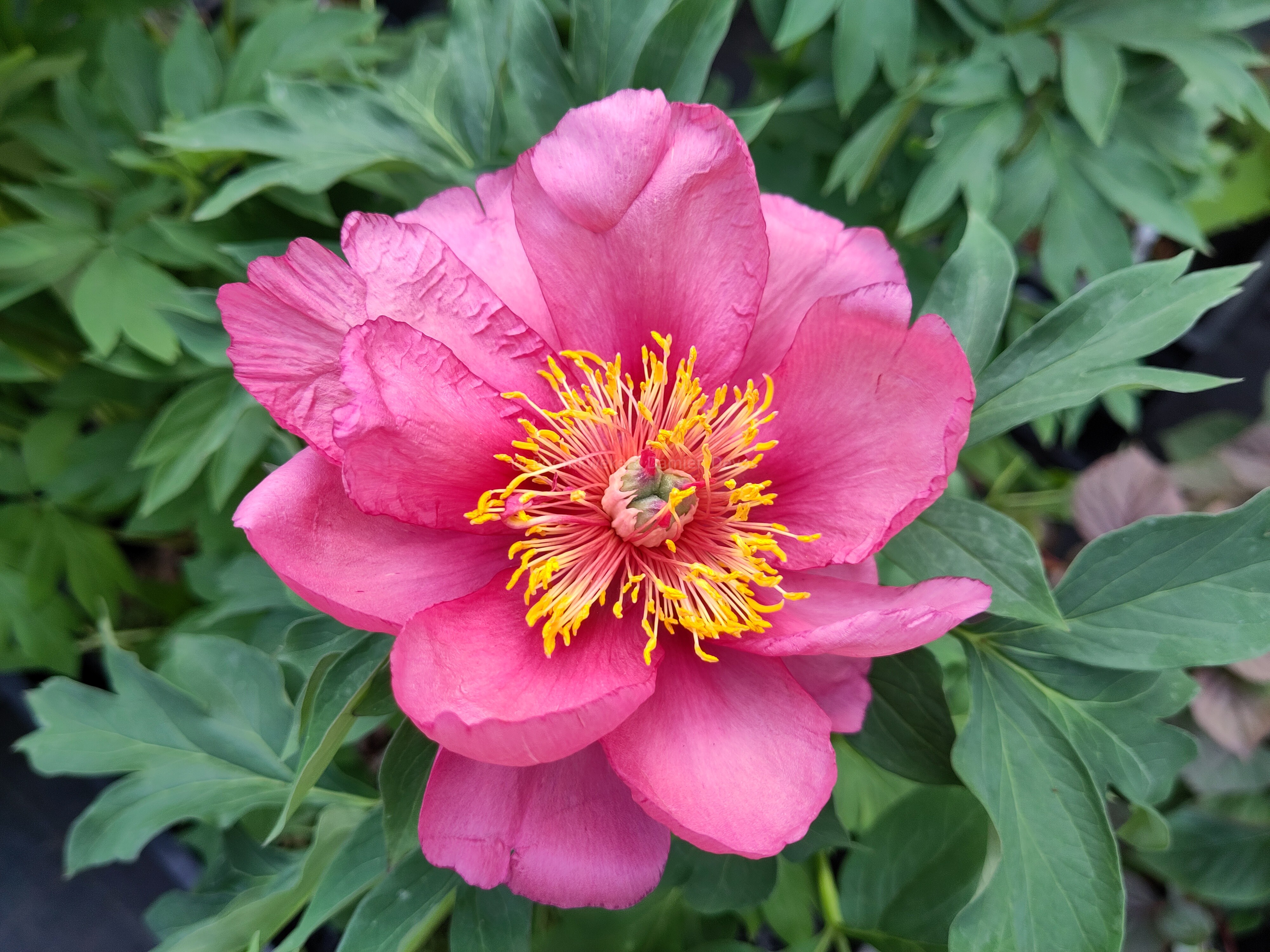Les pivoines Itoh font référence à M. Itoh, un Japonais. Il a été le premier à réussir à croiser une pivoine commune, qui est une plante vivace, avec une pivoine arbustive. Ces pivoines uniques ont des branches plus robustes que la pivoine vivace classique, ce qui permet aux fleurs de rester bien droites. Les feuilles sont également plus saines et prennent souvent une belle couleur jaune ou rouge en automne.