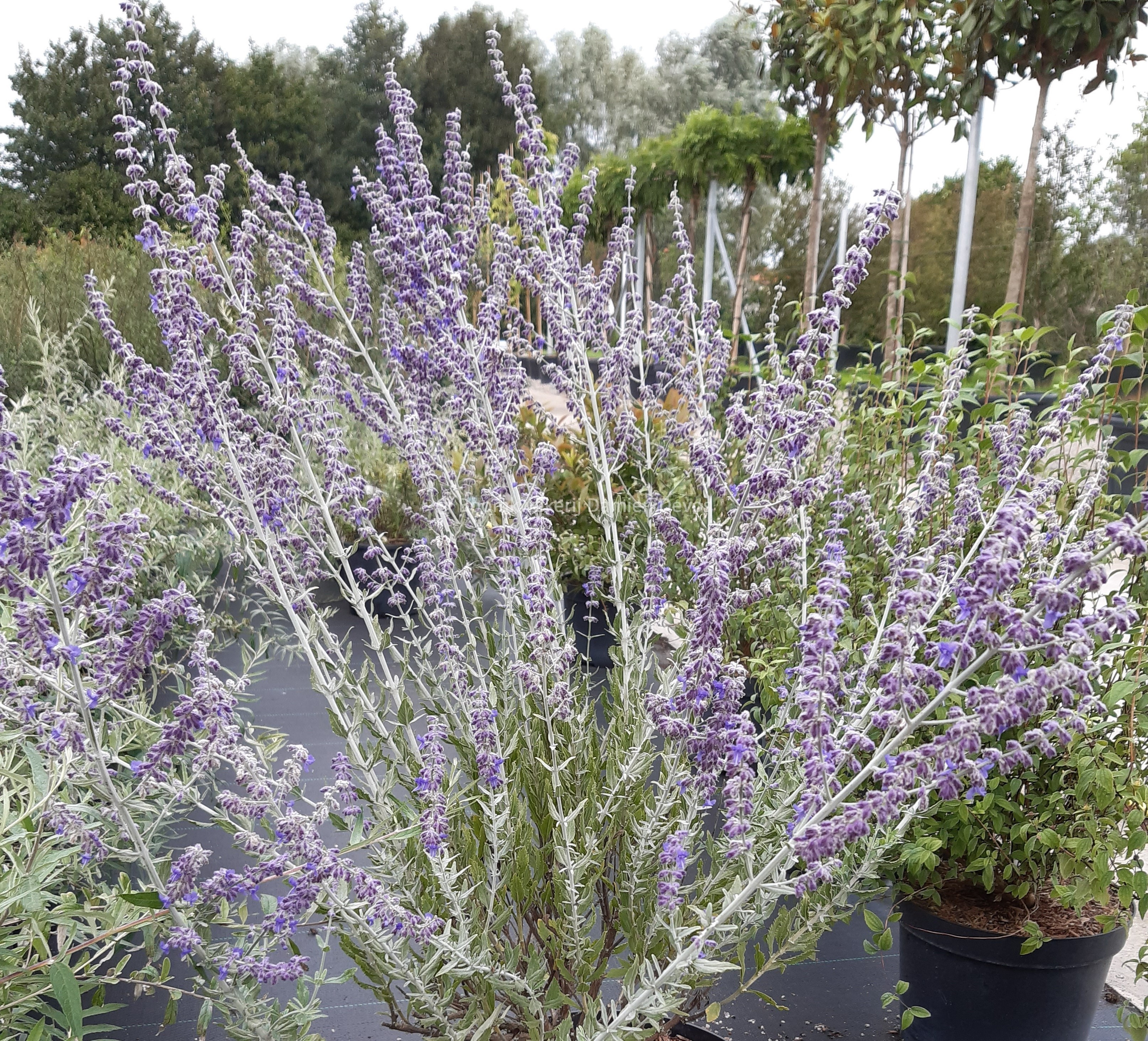 Comme son nom latin l'indique, cette sélection est une variété compacte qui ne dépasse pas 1 mètre de hauteur. Elle a un fort port érigé. C'est une plante très remarquable avec ses feuilles oblongues gris-vert et ses fleurs bleues lavande. Préfère le soleil sur un sol calcaire.