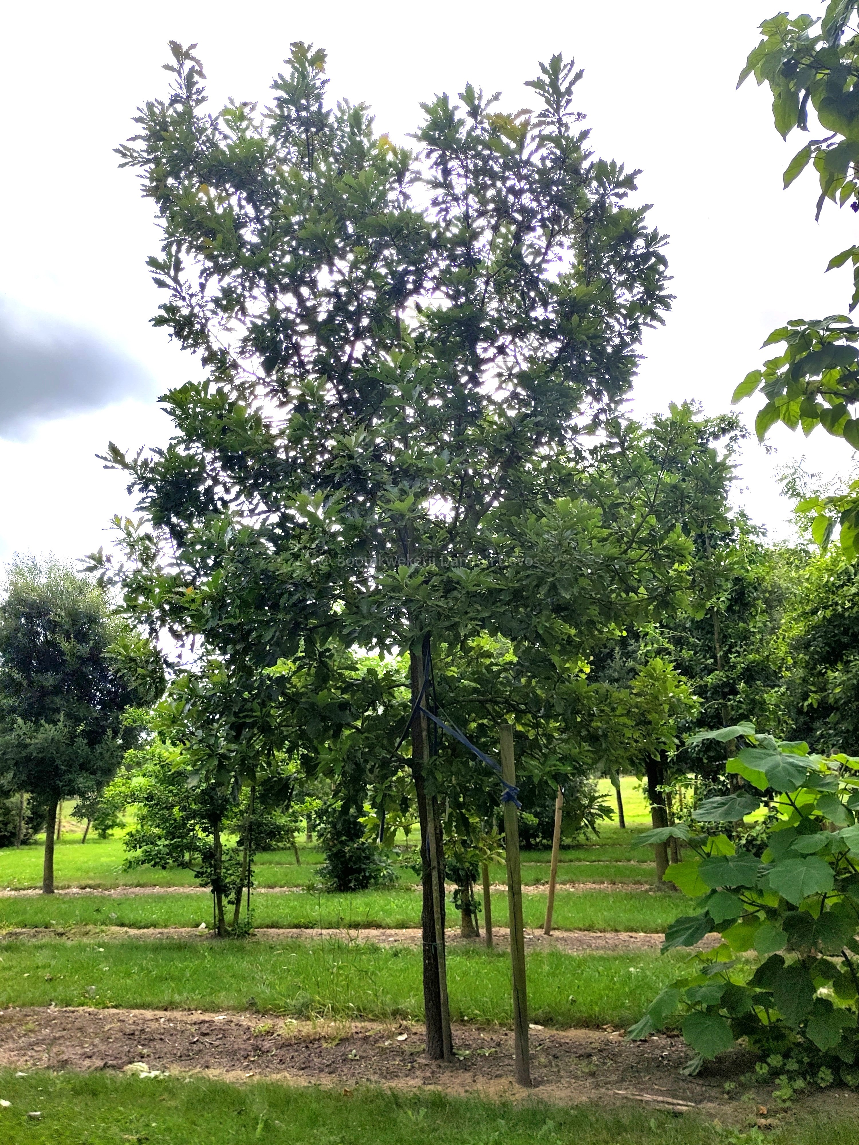 Quercus vilmoriniana 'A. De Vilmorin' est une magnifique espèce de chêne, réputée pour son apparence élégante. Ce chêne possède des feuilles brillantes, vert foncé, qui prennent une impressionnante couleur dorée à l'automne. Il a une croissance modérée et atteint finalement une hauteur d'environ 10 à 15 mètres, ce qui le rend adapté aux jardins de taille moyenne à grande. L'arbre préfère une exposition ensoleillée et un sol bien drainé, et il est relativement tolérant à la sécheresse et au vent. Son caractère robuste, avec son écorce joliment striée, et ses belles couleurs automnales font de ce chêne un ajout précieux à tout jardin!