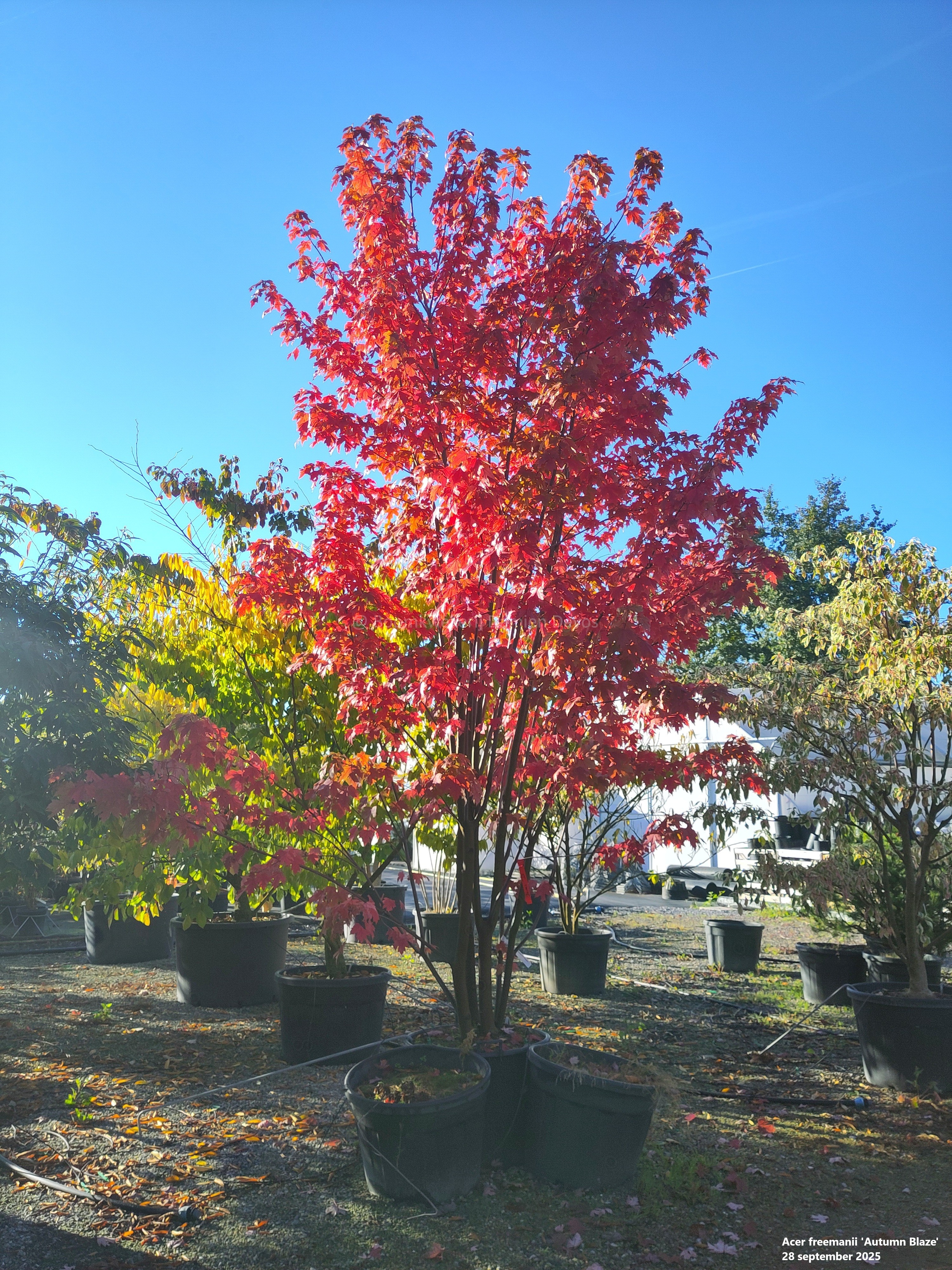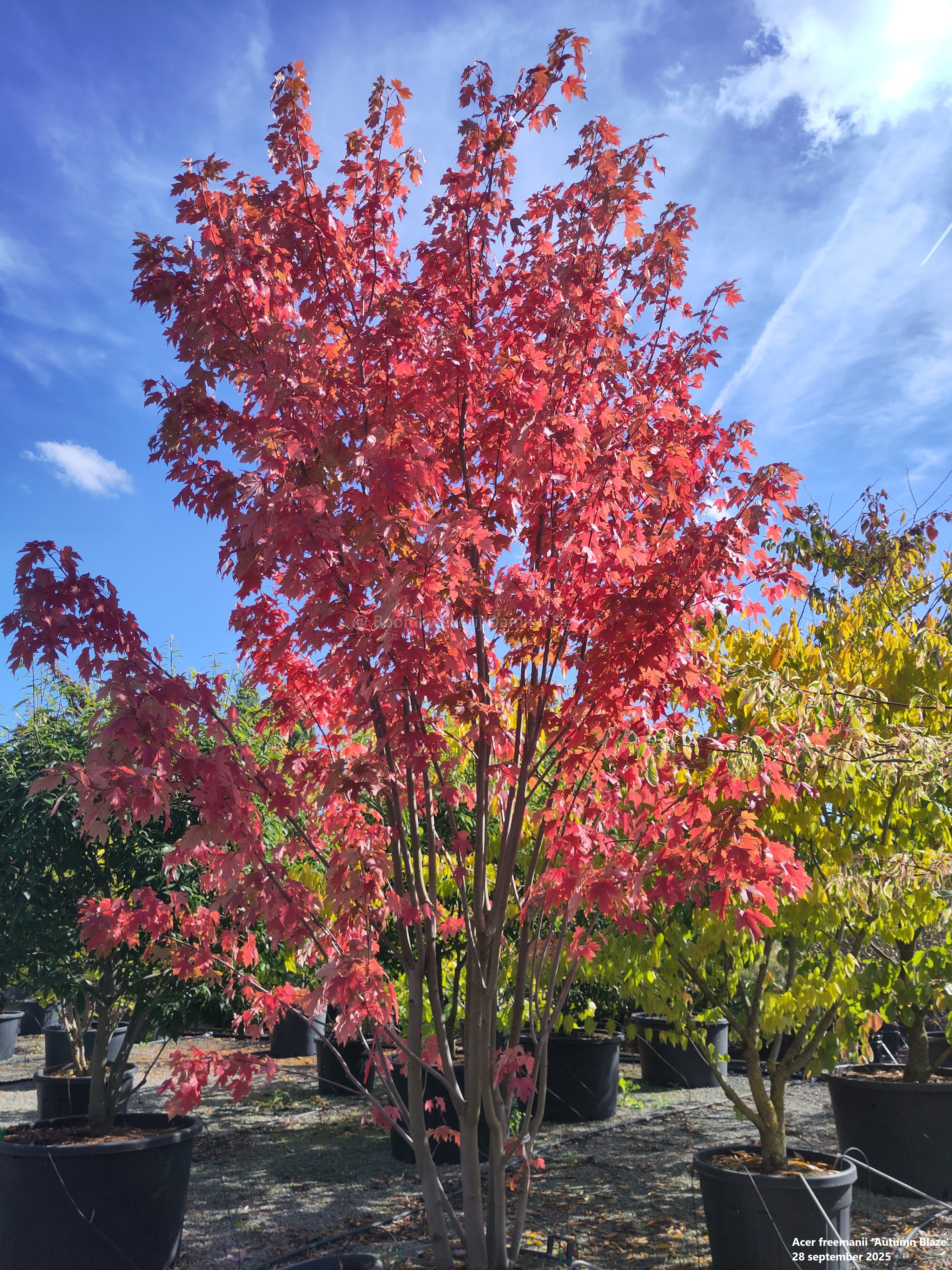 Acer freemanii 'Autumn Blaze' is een middelgrote boom waarvan de bladeren schitterend rood verkleuren in de herfst. De bladeren blijven vrij lang aan de boom voor ze afvallen.