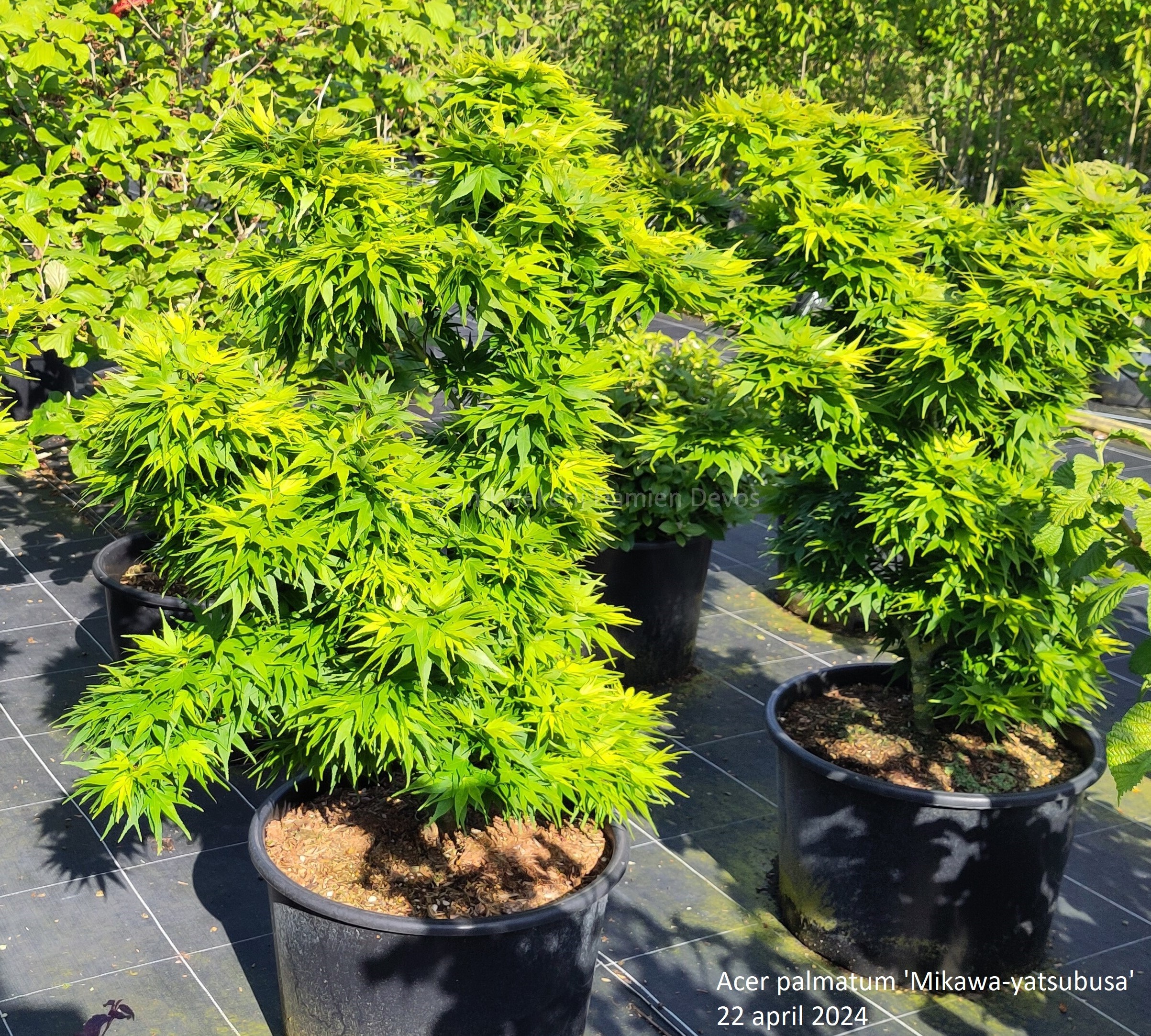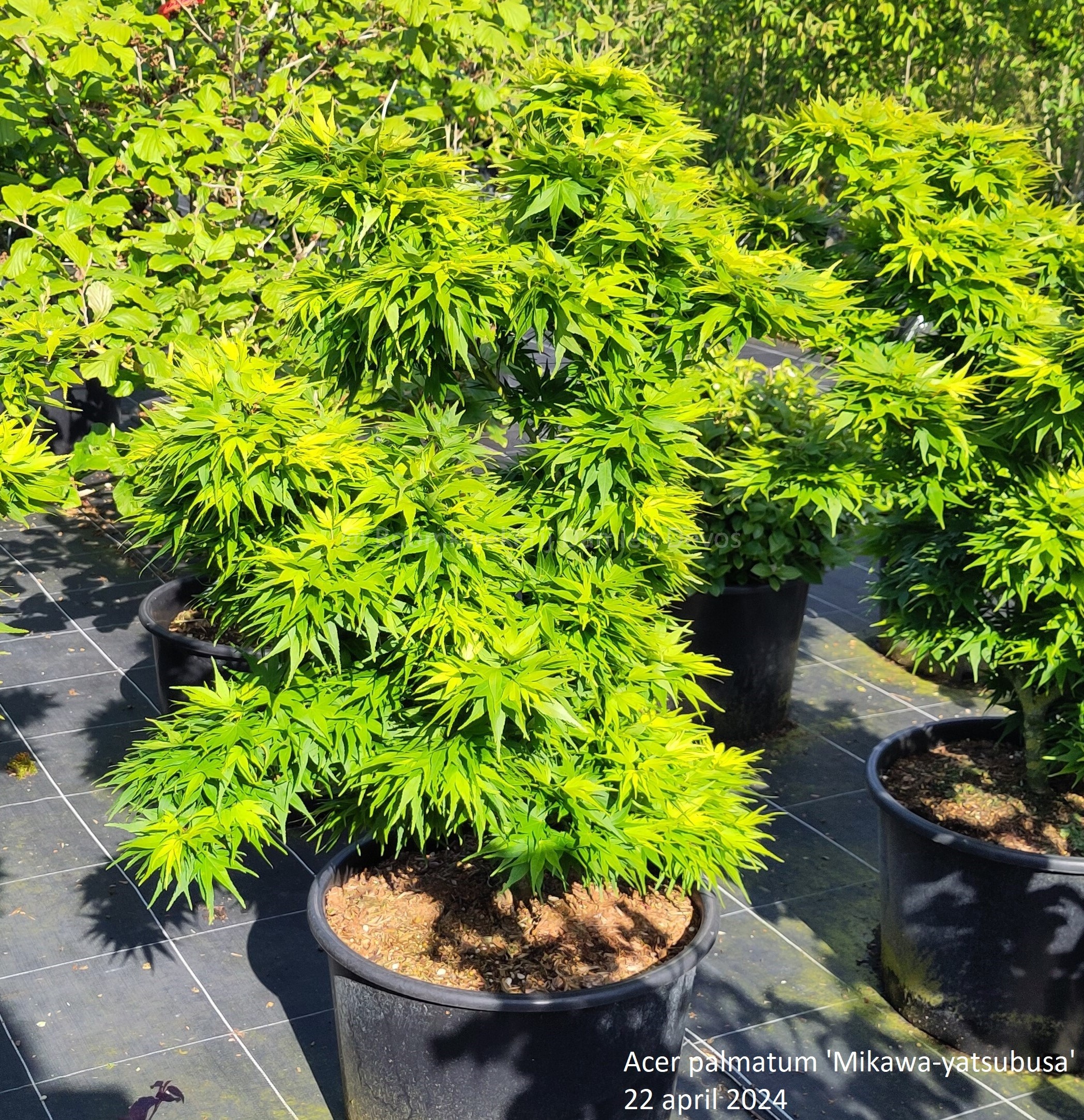 Acer palmatum 'Mikawa-yatsubusa' is een sierlijke Japanse esdoorn die traag groeit en ook zeer klein blijft. Hij wordt een anderhalve meter hoog. (maximum 2 meter)