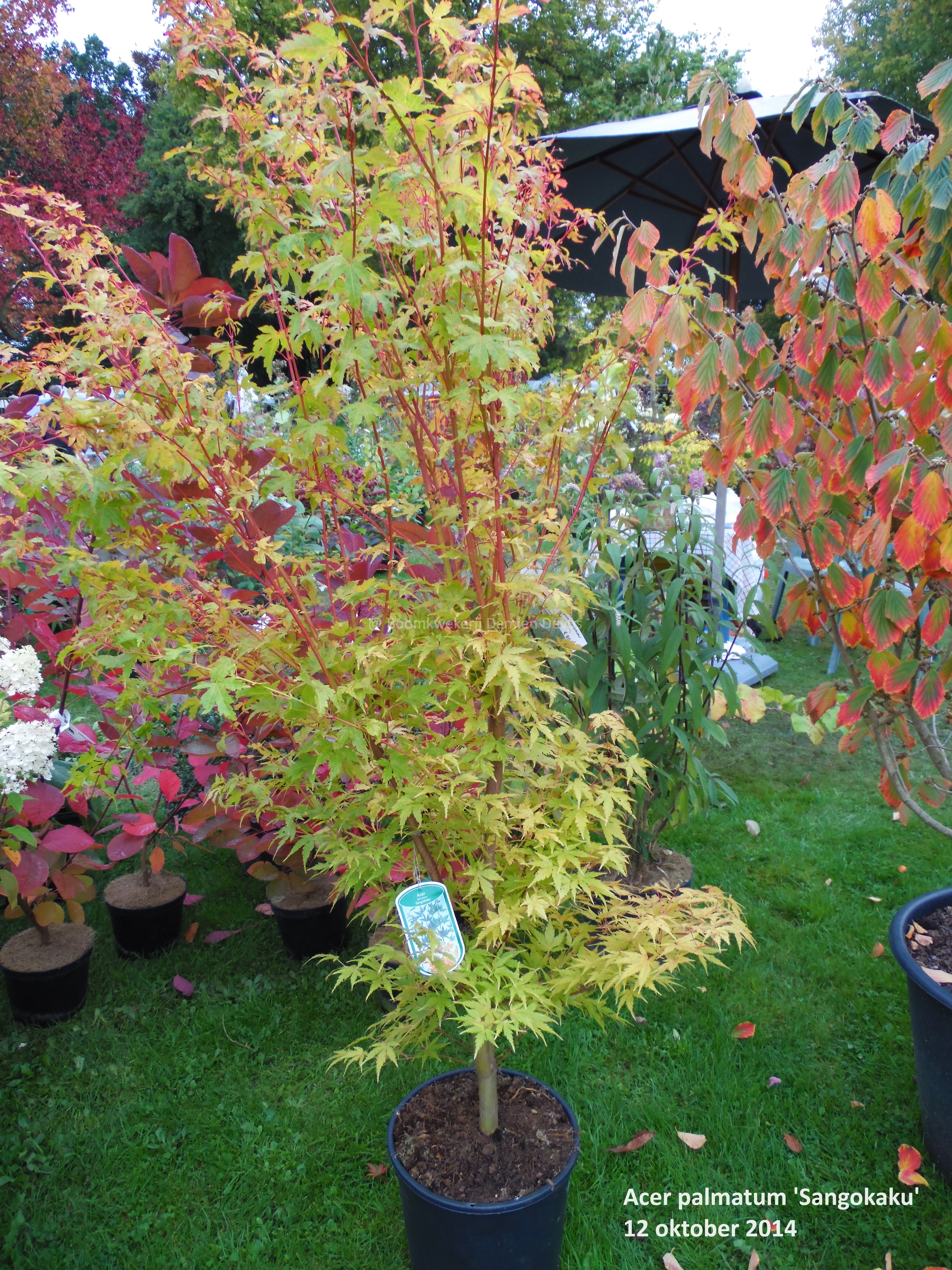 Sangokaku heeft niet alleen prachtige bladeren, maar ook een zeer decoratieve bast. De ranke twijgen hebben een intense felrode kleur, die mooi uitkomt in de winterperiode. De bladeren zijn eerst zachtrood, maar worden later limoengeel. In het najaar krijgen ze warme gele, oranje en rode herfstkleuren.