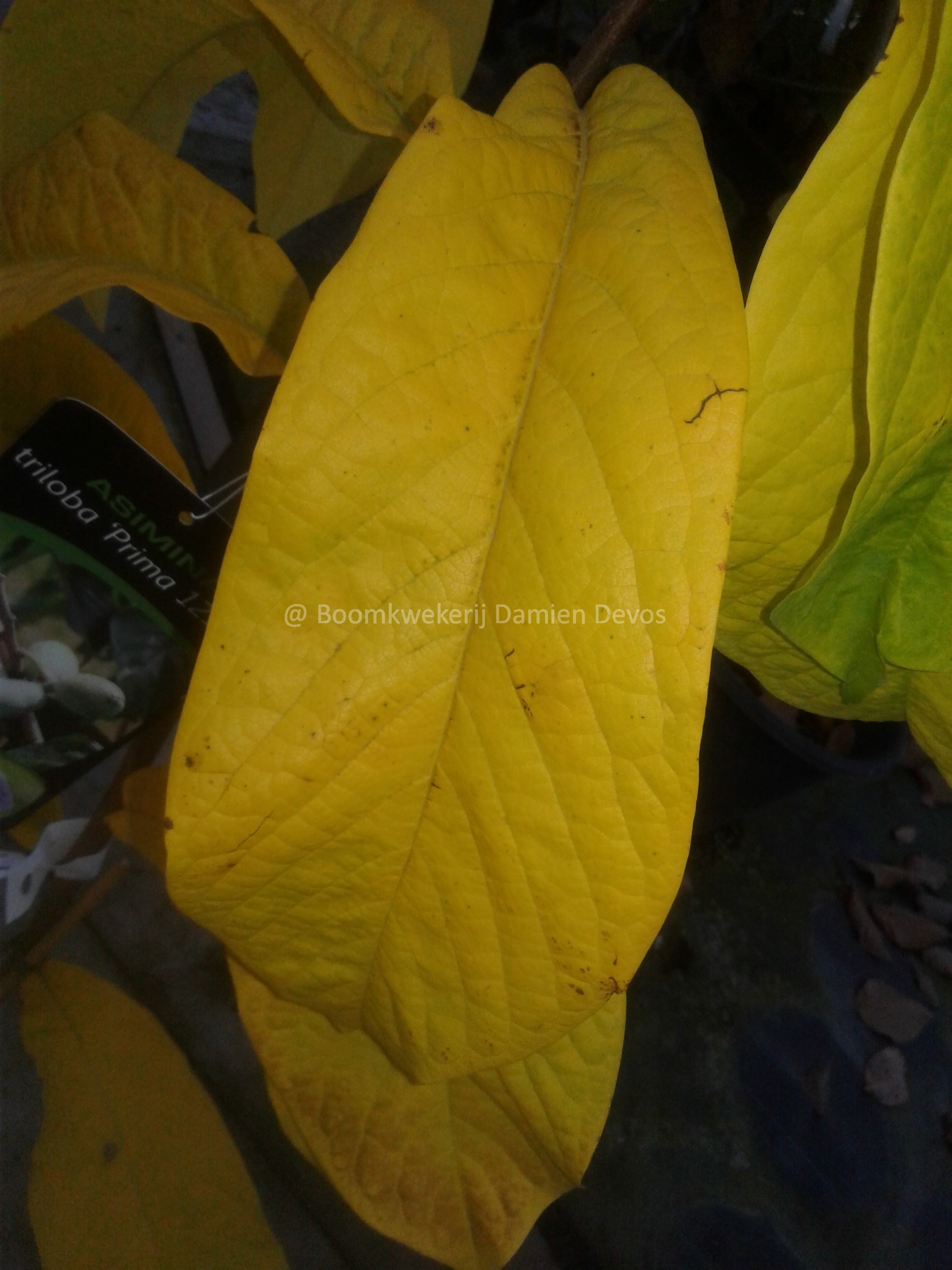De vruchten van deze bladverliezende pawpawplant zijn eind september rijp. Ze smaken naar mango- banaan.