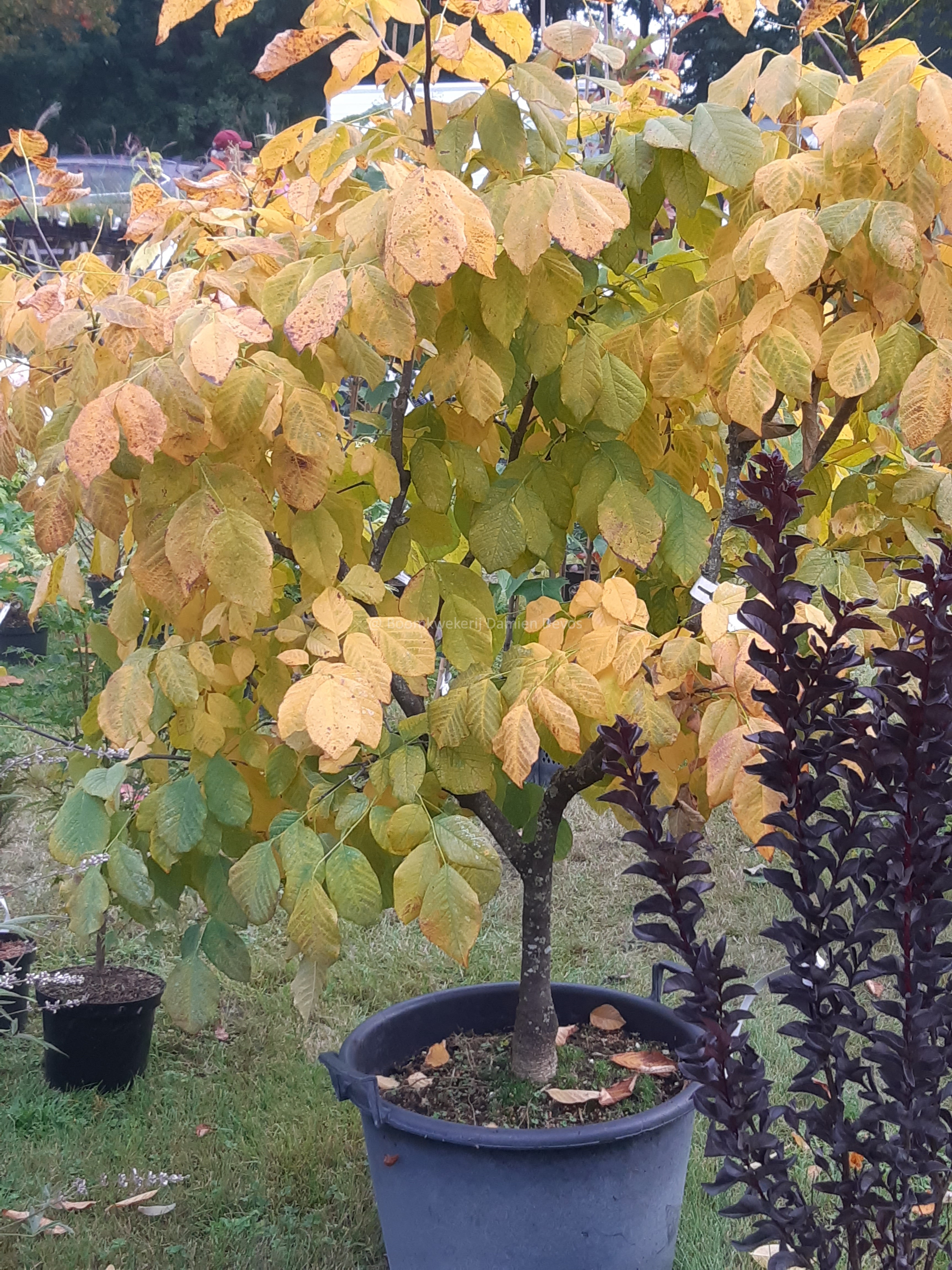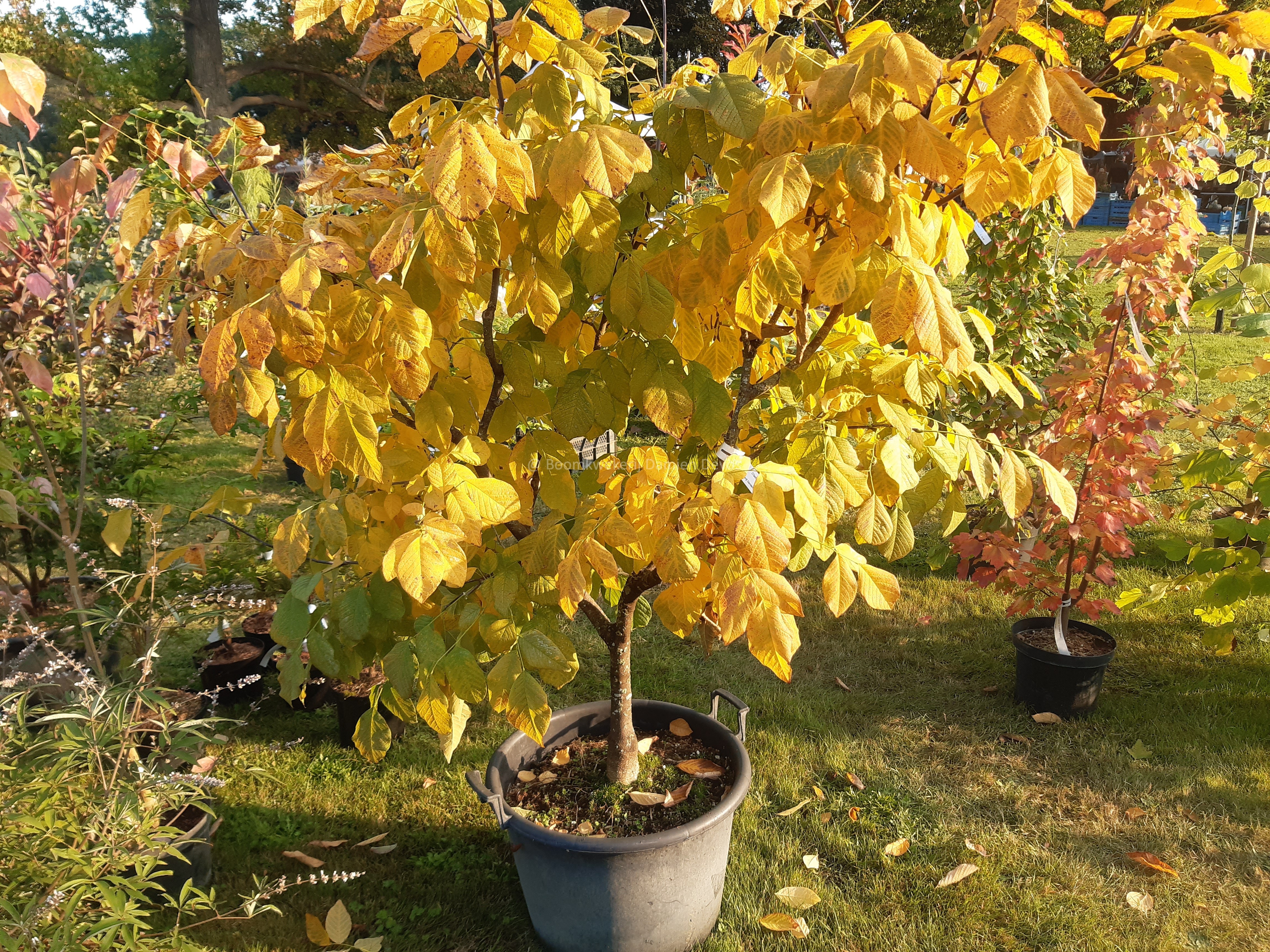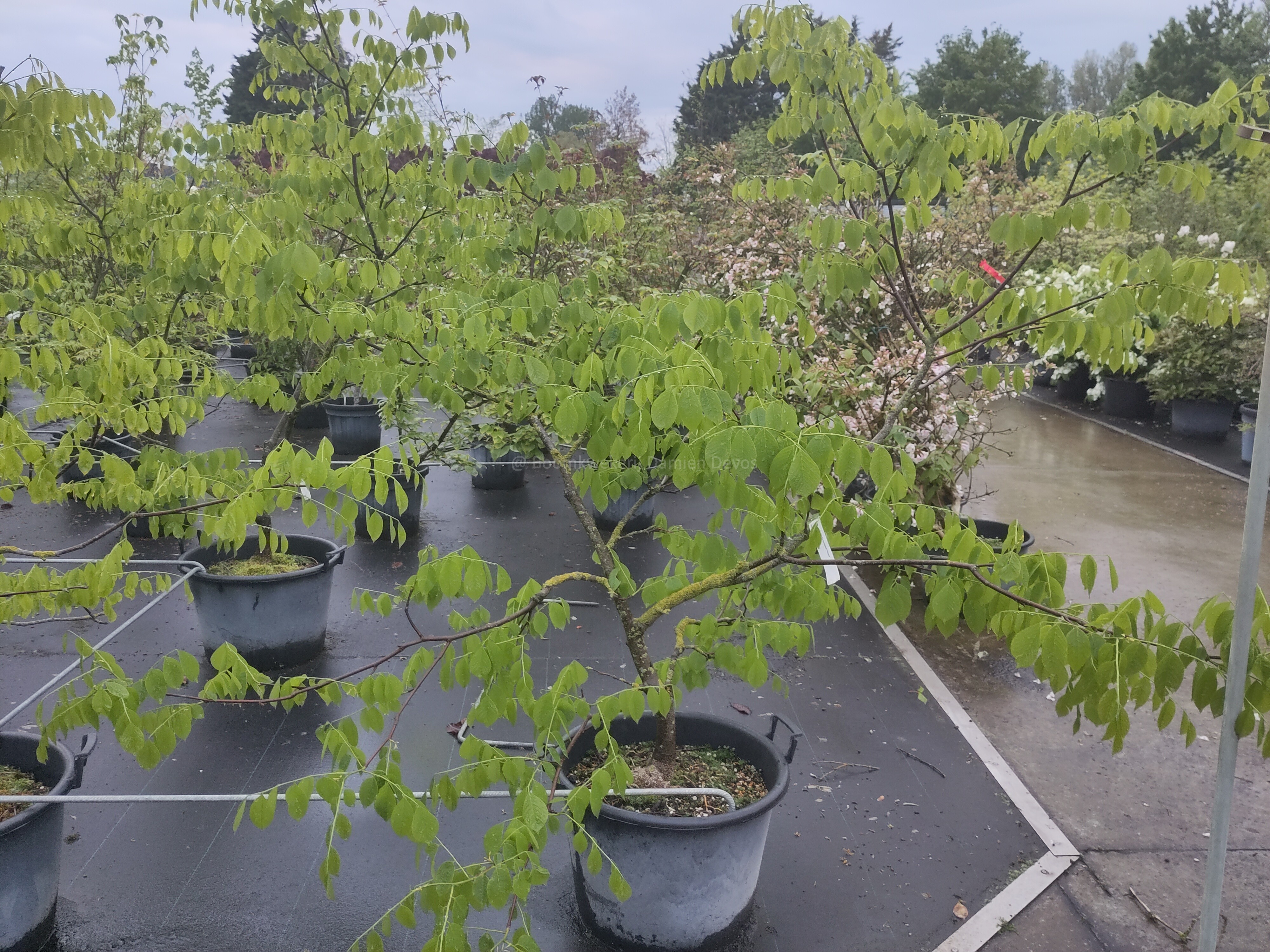 Cladrastis kentukea of geelhoutboom is een kleine boom met brede bolvormige kroon die een prachtige gele herfstverkleuring heeft. Deze cultivar 'Rosea' bloeit met geurende lichtroze pendulevormige bloemen. Deze boom houdt van een zonnige plaats en is goed winterhard.