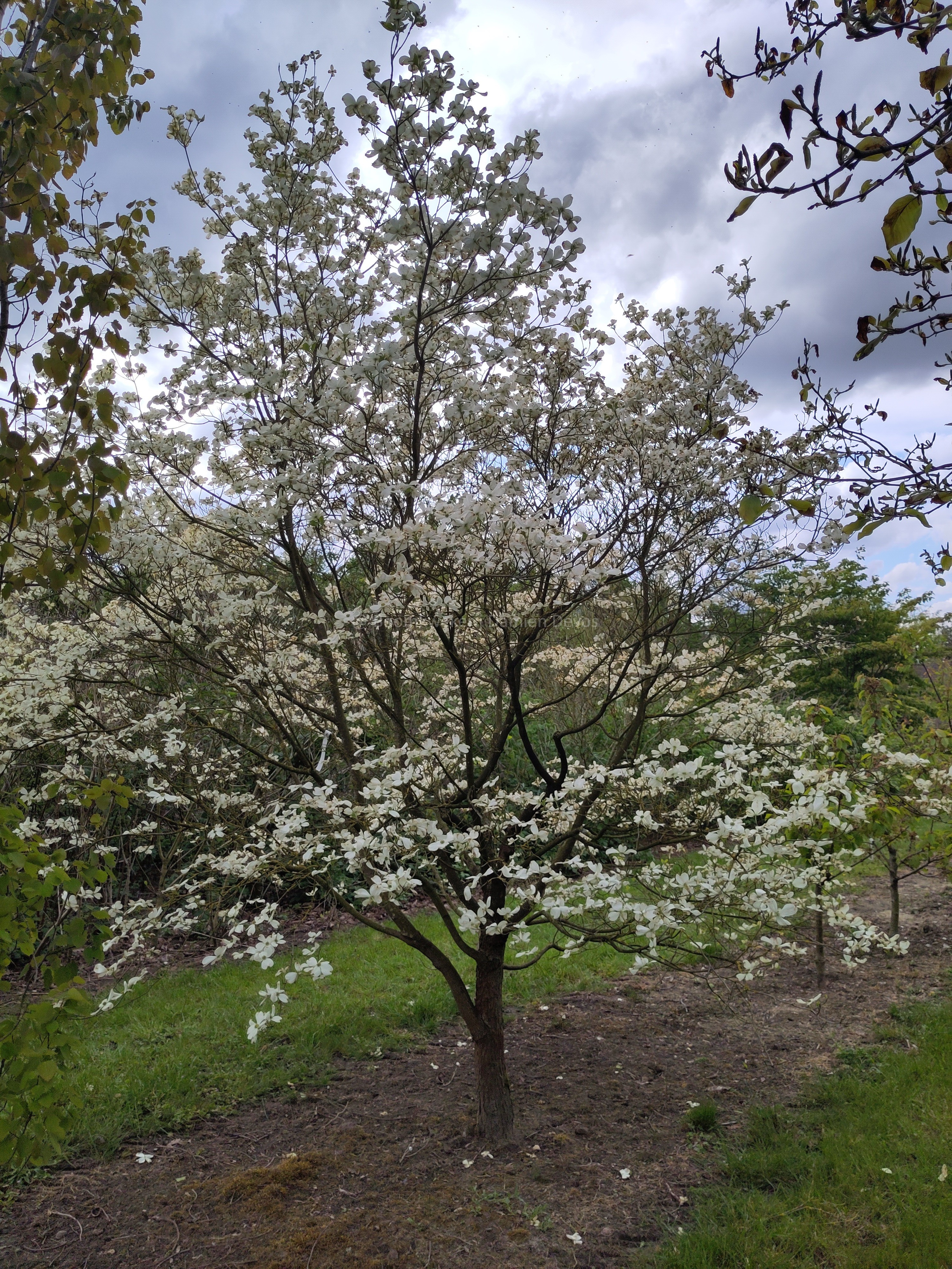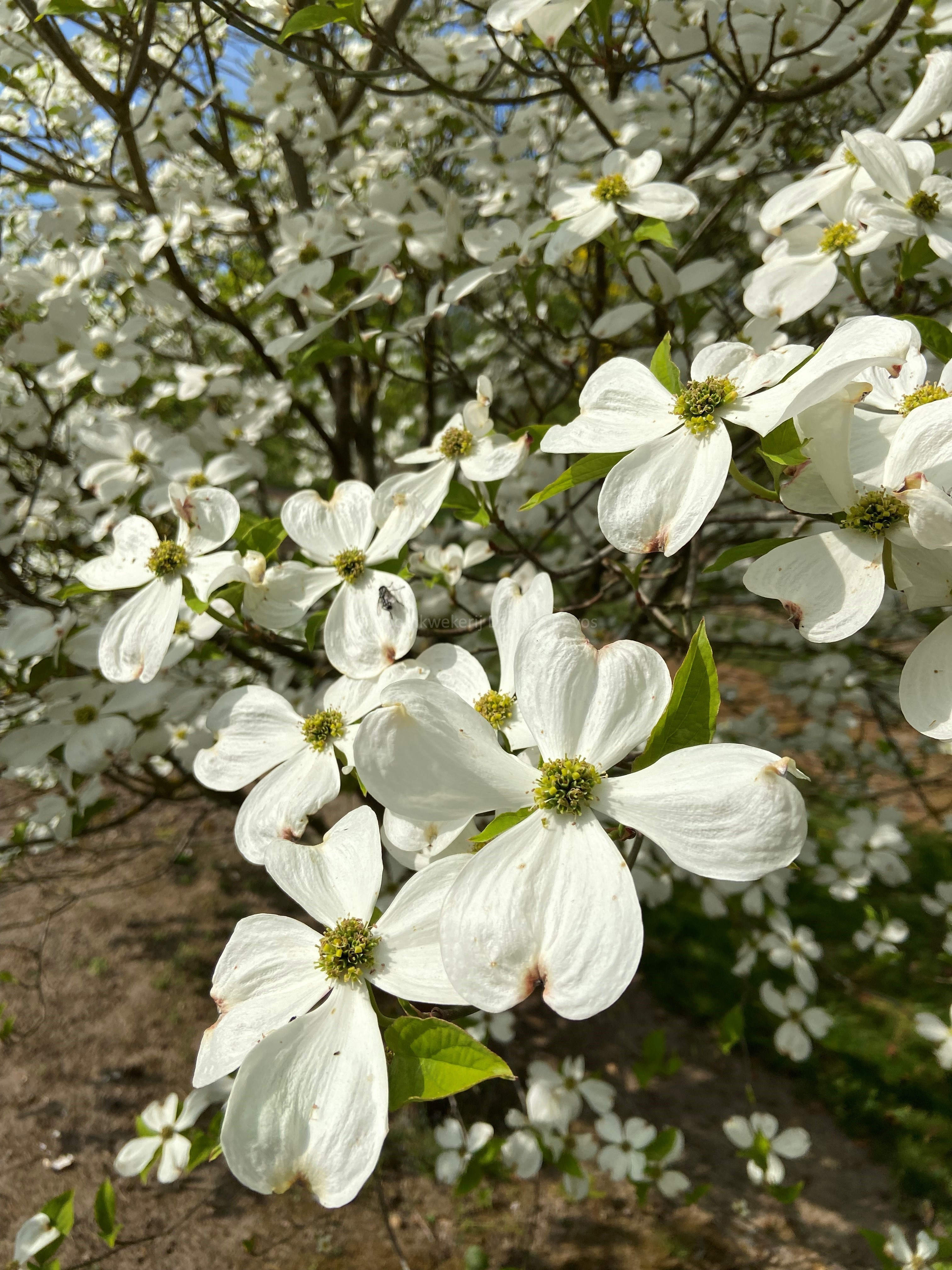 Cornus florida 'Cherokee Princess' is een cultivar die gekend is om zeer uitbundig te bloeien met opvallende grote witte bloemen.