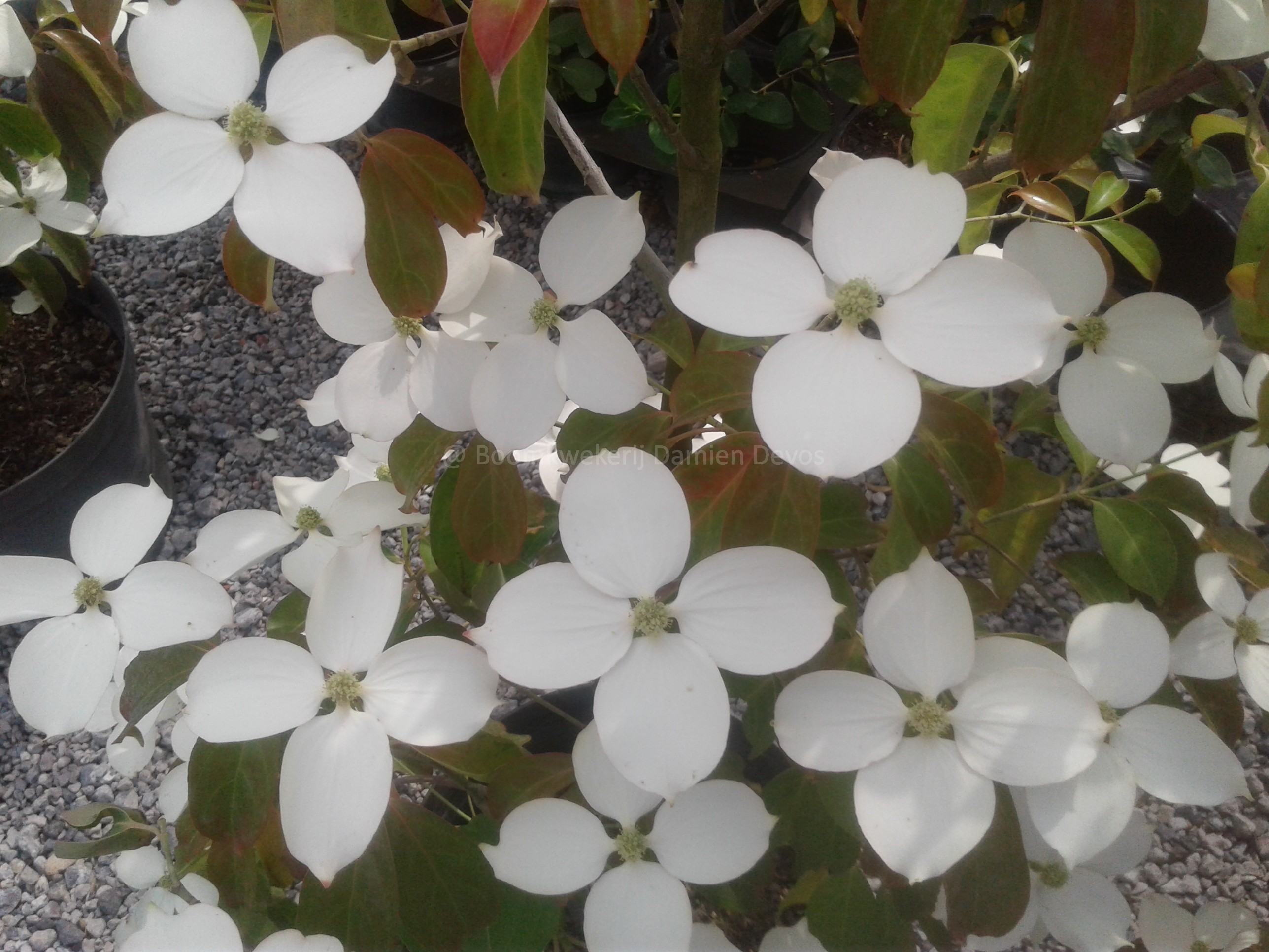 De nieuwe scheuten van deze Cornus hongkongensis zijn roodachtig.