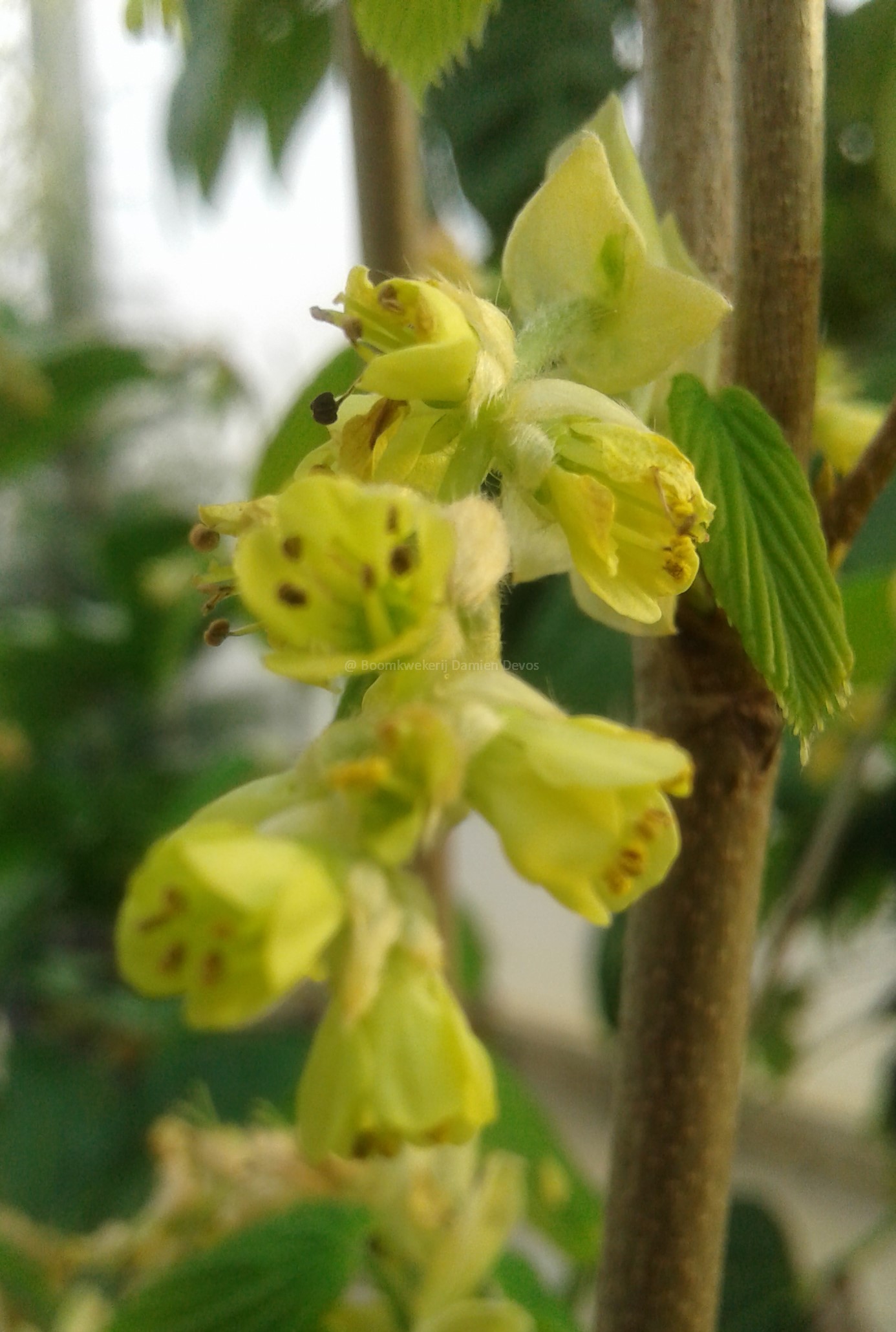 De schijnhazelaar heeft een opmerkelijke bloei waarbij de trossen citroengele bloemen met rode helmknoppen op de uiteinden. Na de bloei komen de paars-bronskleurige bladeren uit die doorheen het ganse jaar een volledige kleurtransformatie ondergaan. De paars-bronskleurige bladeren worden vervolgens groen en in de herfst vertonen ze gele en oranje tinten. In het najaar verschijnen er zwarte vruchten aan de plant.