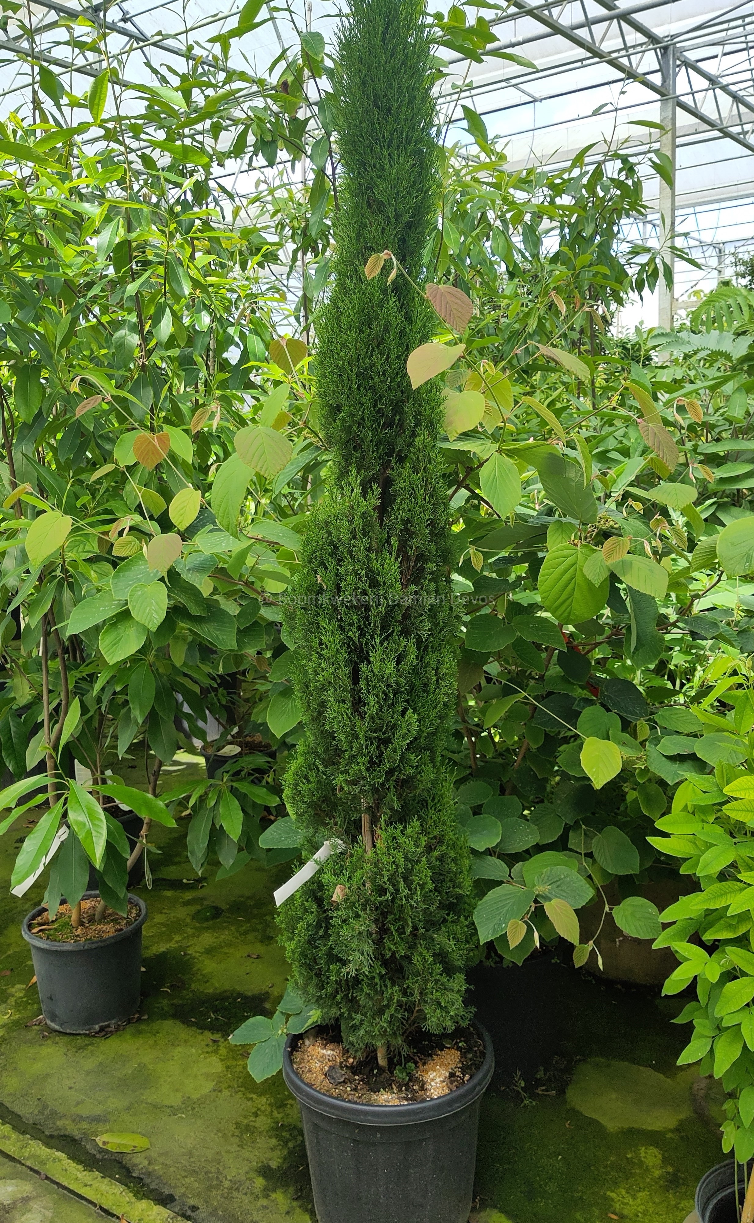 Cupressus sempervirens 'Totem' is een groenblijvende conifeer die in een smalle zuilvorm groeit.
