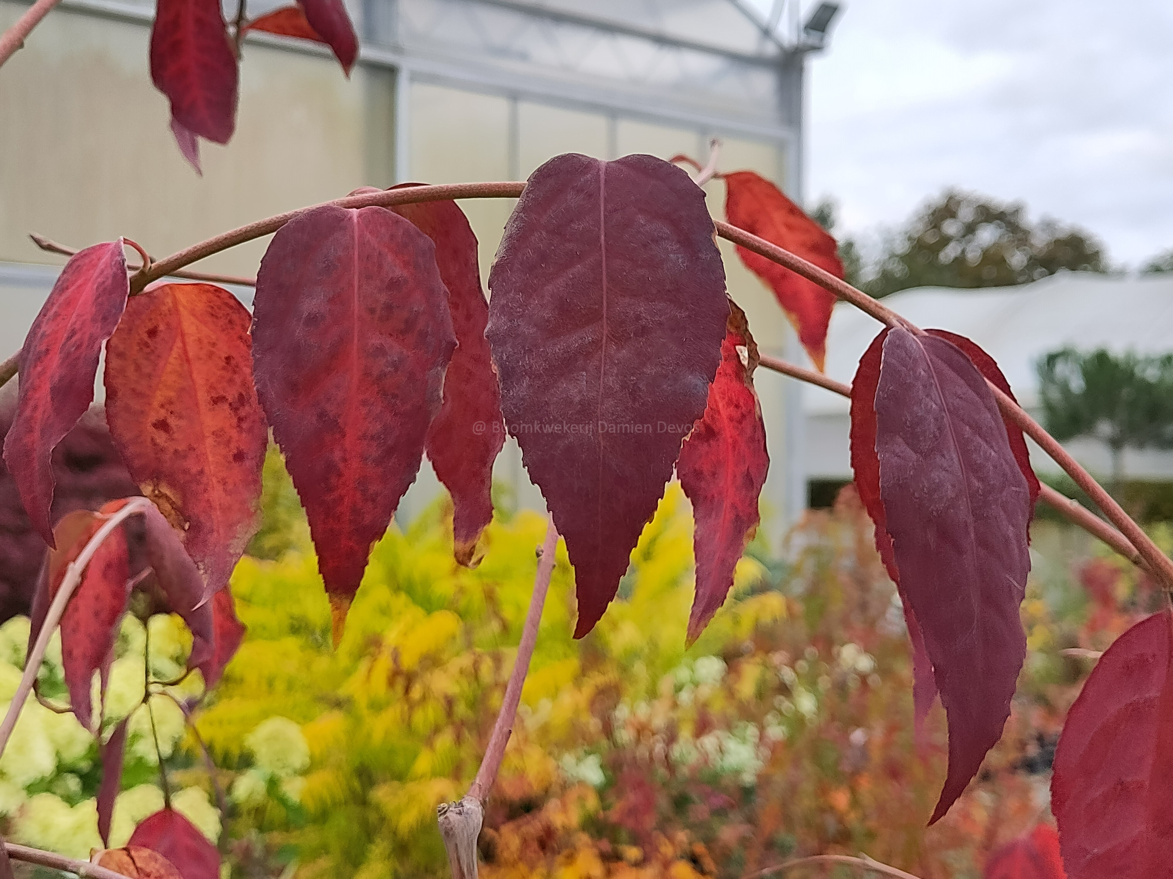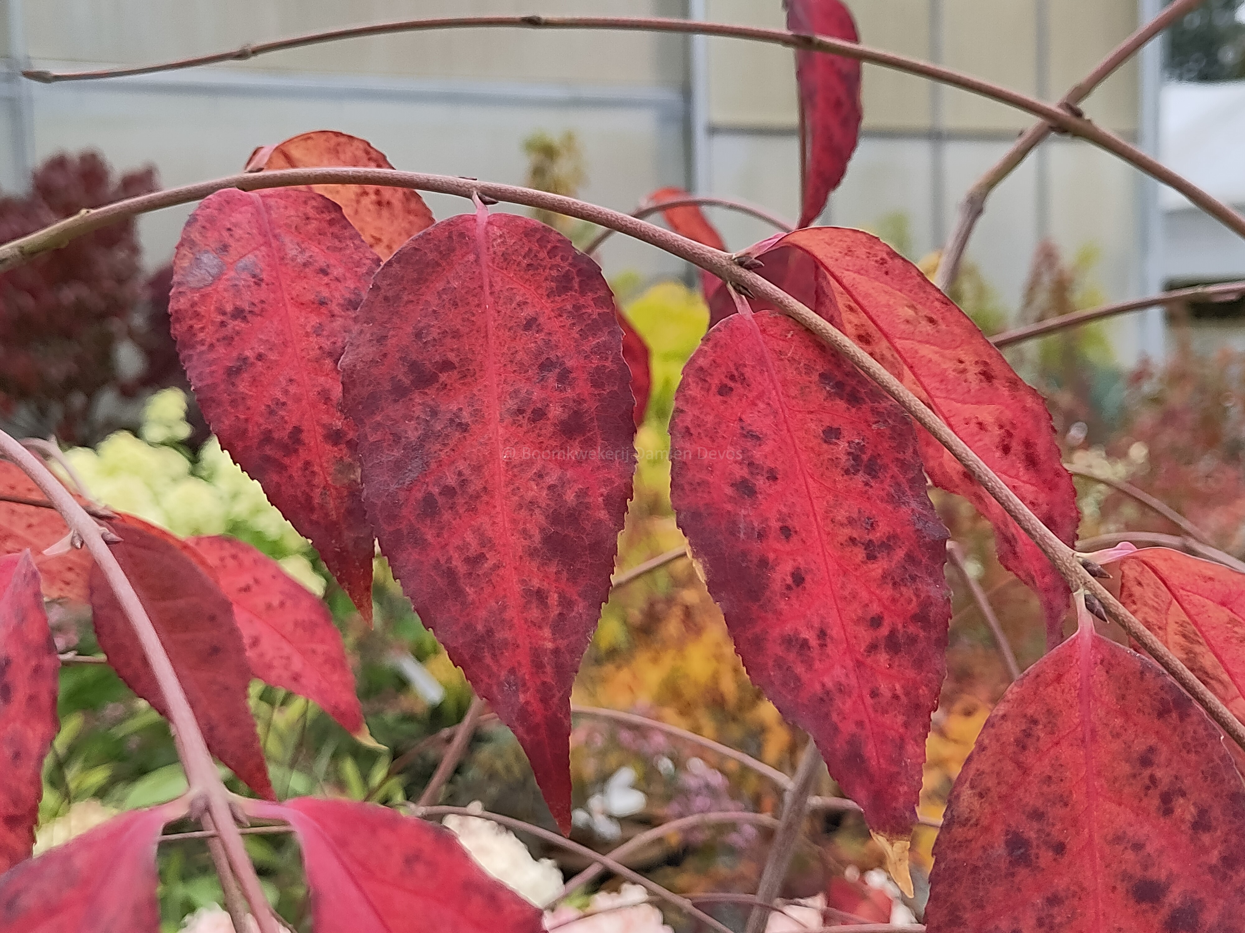 Deze Koreaanse of Japanse struik krijgt een schitterende rode herfstkleur in oktober.
