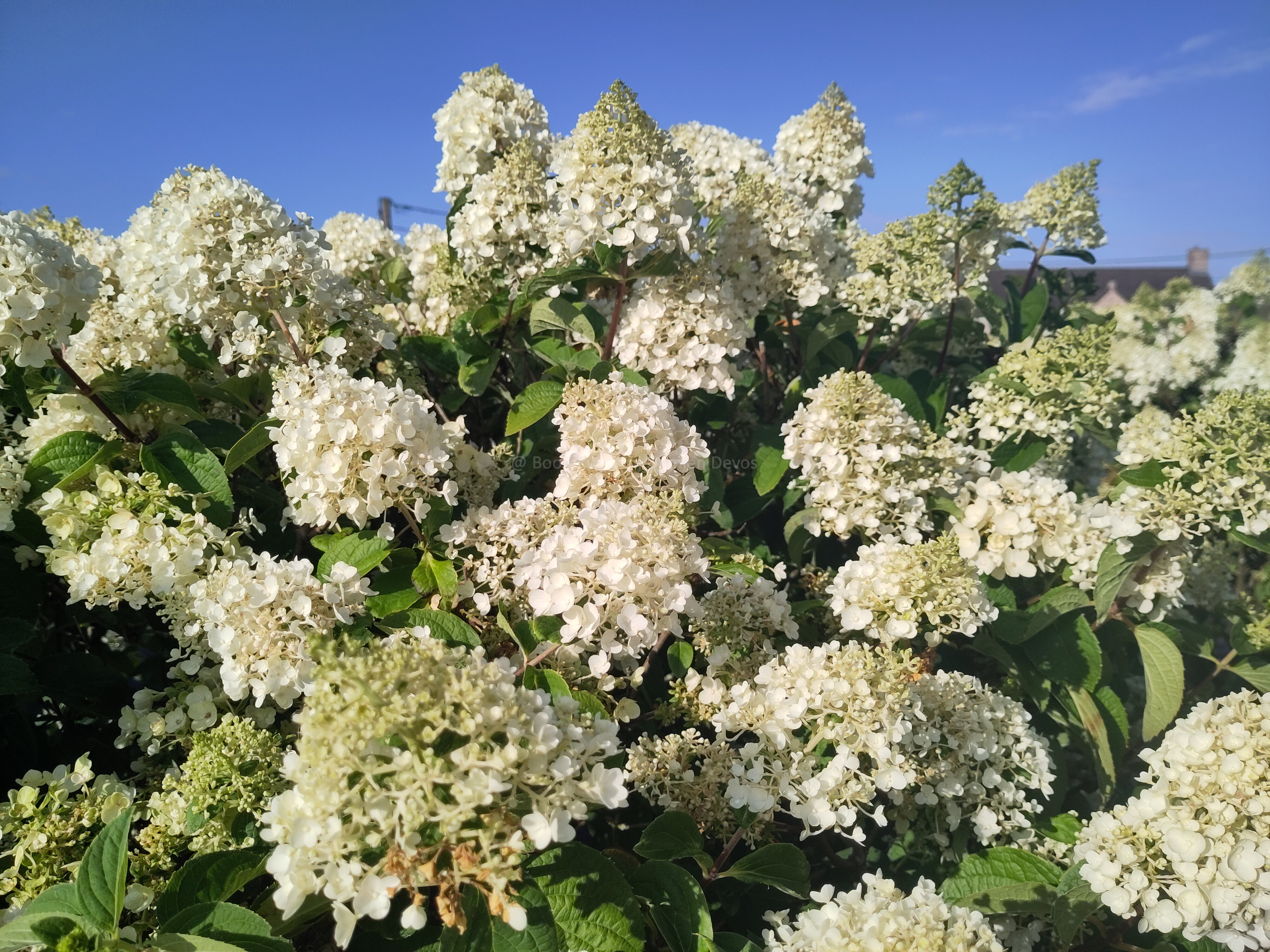 Prachtige, compacte, rijkbloeiende struik met witte bloemen in de zomer, die naar het eind een beetje roze worden.
