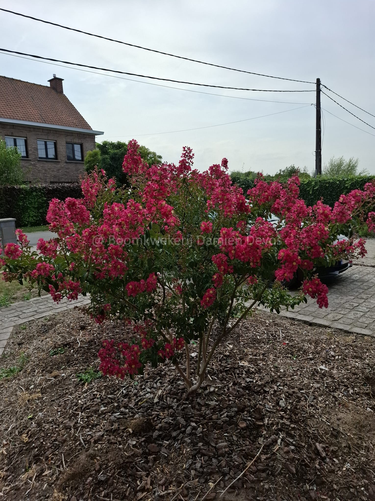 De Lagerstroemia indica 'Turenne' is bladverliezend en heeft een compacte, opgaande groei. Bloeit rijk in de zomer met opvallend roze tot fuchsia pluimachtige trossen bloemen. De gladde stam van jonge planten verkleurt olijfgroen tot grijsbruin, bij oudere planten schilfert de bast en toont een glanzend kaneelbruine onderlaag.