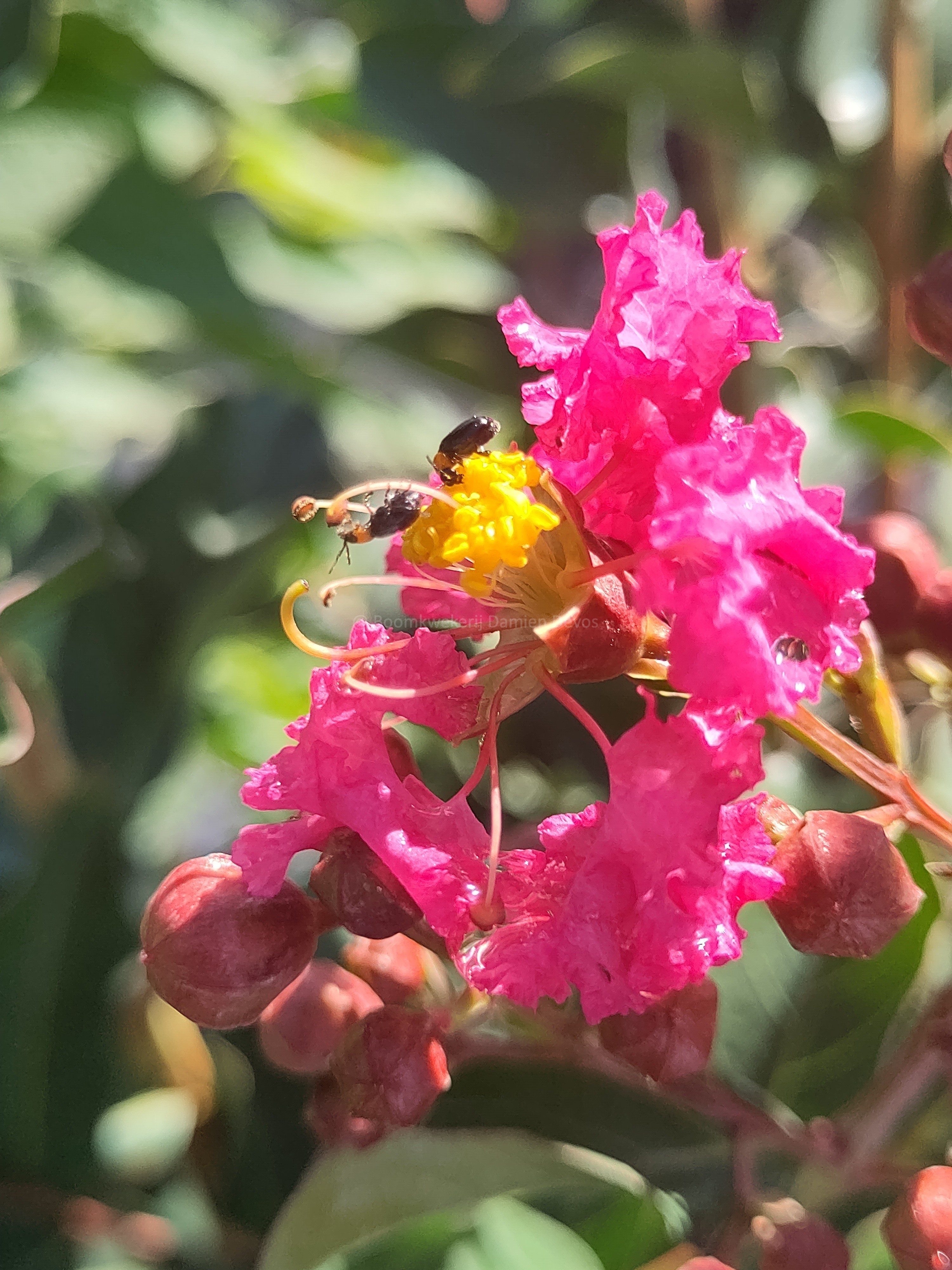 Deze Indische sering bloeit in de nazomer en herfst met grote trossen felroze bloemen.