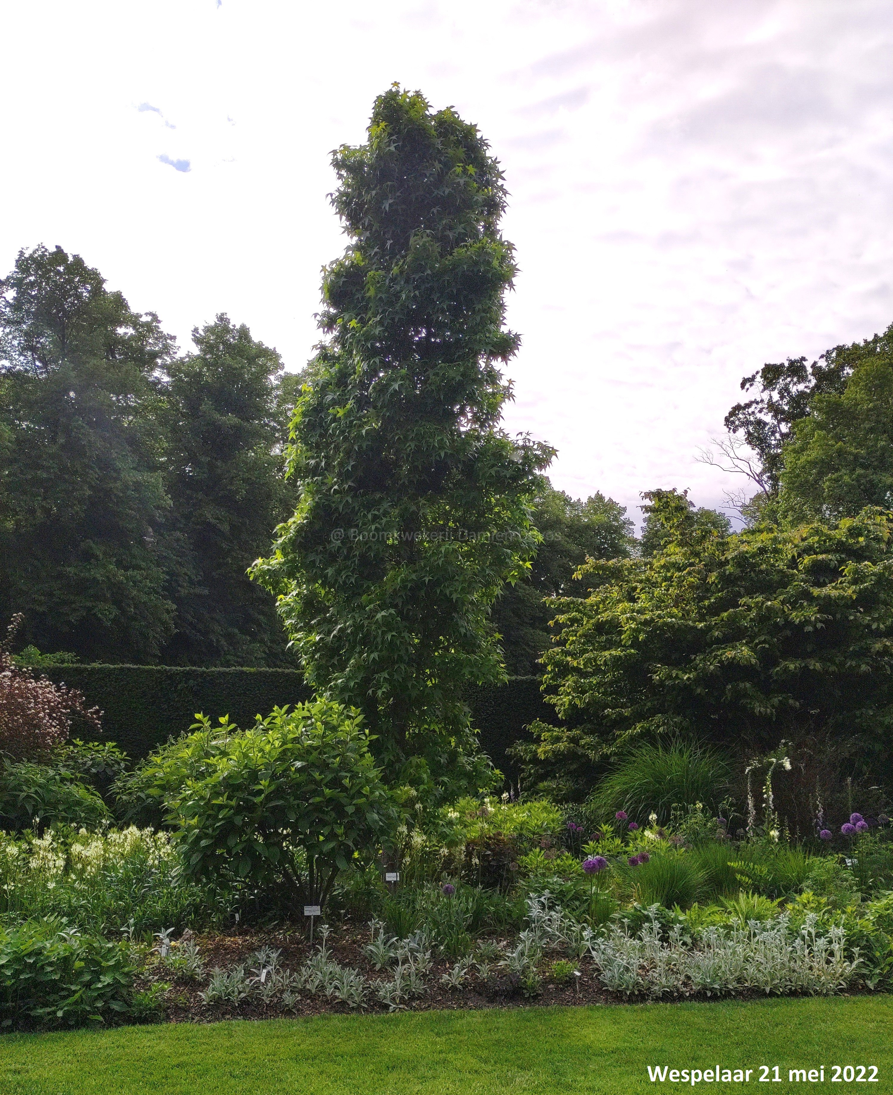 Liquidambar styraciflua 'Slender Silhouette' is een middelgrote tot grote boom met zuilvormige groeiwijze.
