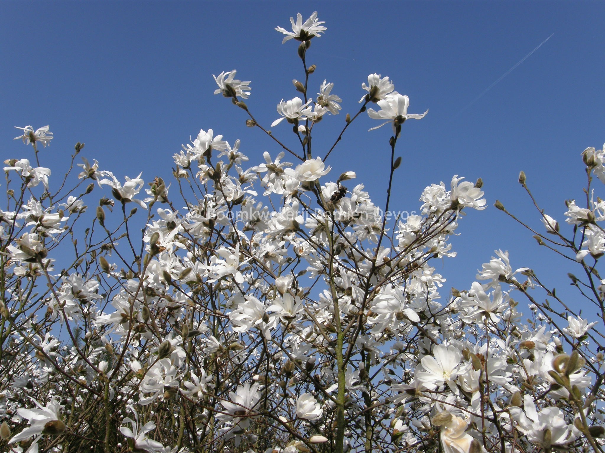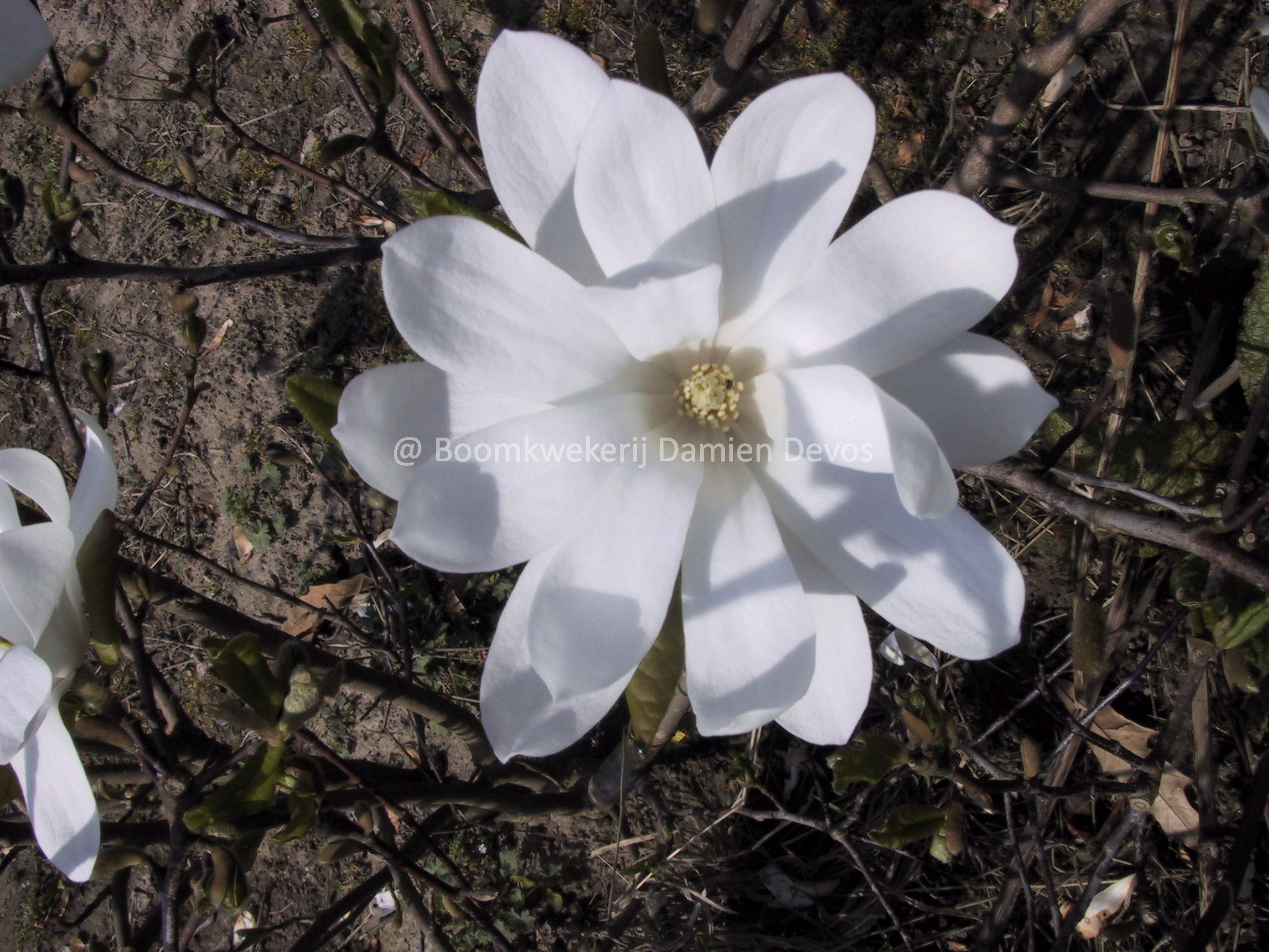 Magnolia loebneri 'Donna' is rijkbloeiende struik met grote, witte bloemen afkomstig uit Amerika. De bloemen geven een heerlijke geur af en verschijnen in april aan de plant. De plant verkiest een plaats in volle zon maar zal ook bloeien in half schaduw. Deze soort Magnolia heeft een RHS Award of Garden Merit gekregen.
