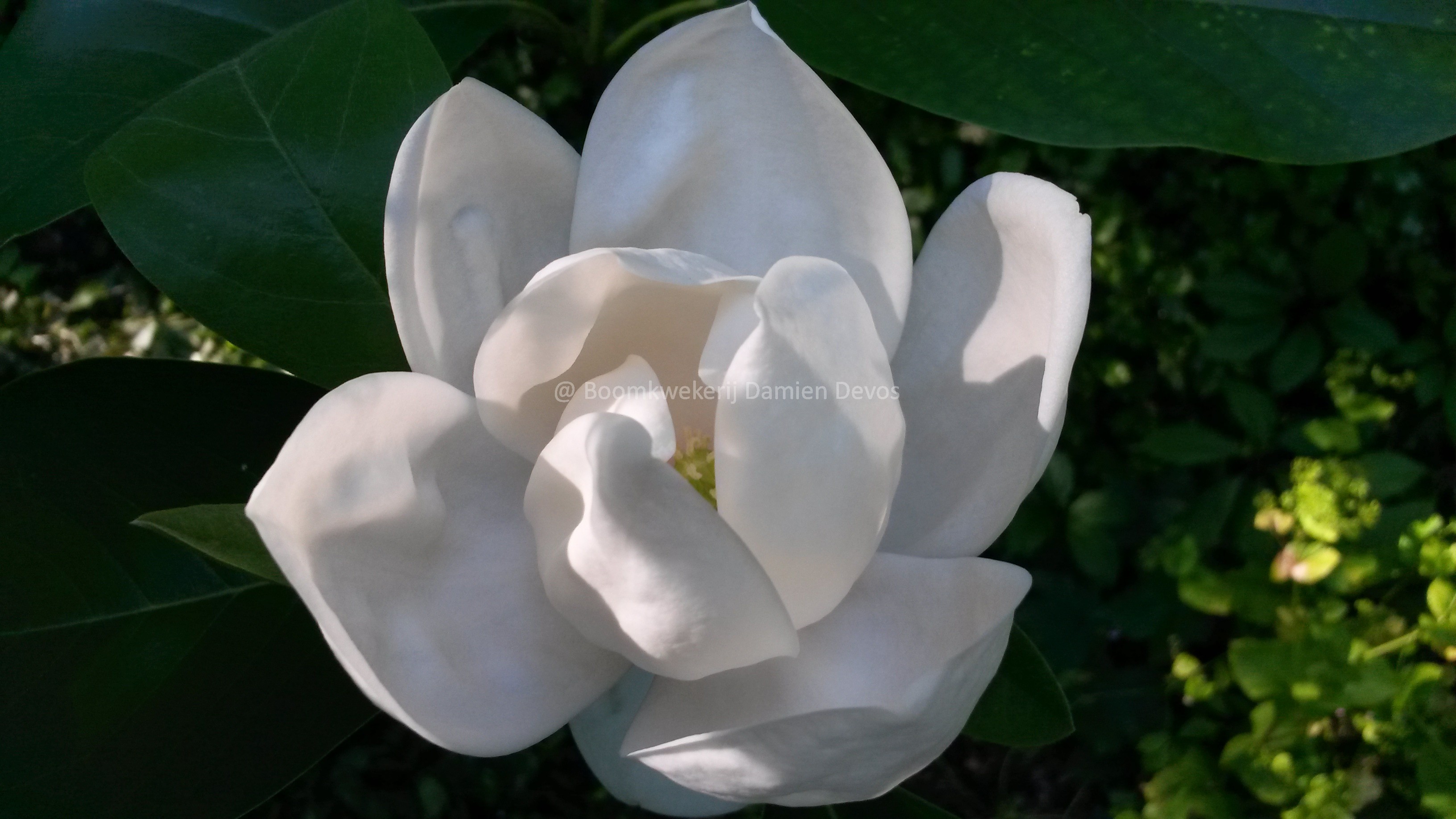 Deze halfwintergroene Magnolia bloeit met porceleinwitte, sterk geurende bloemen vanaf eind mei.