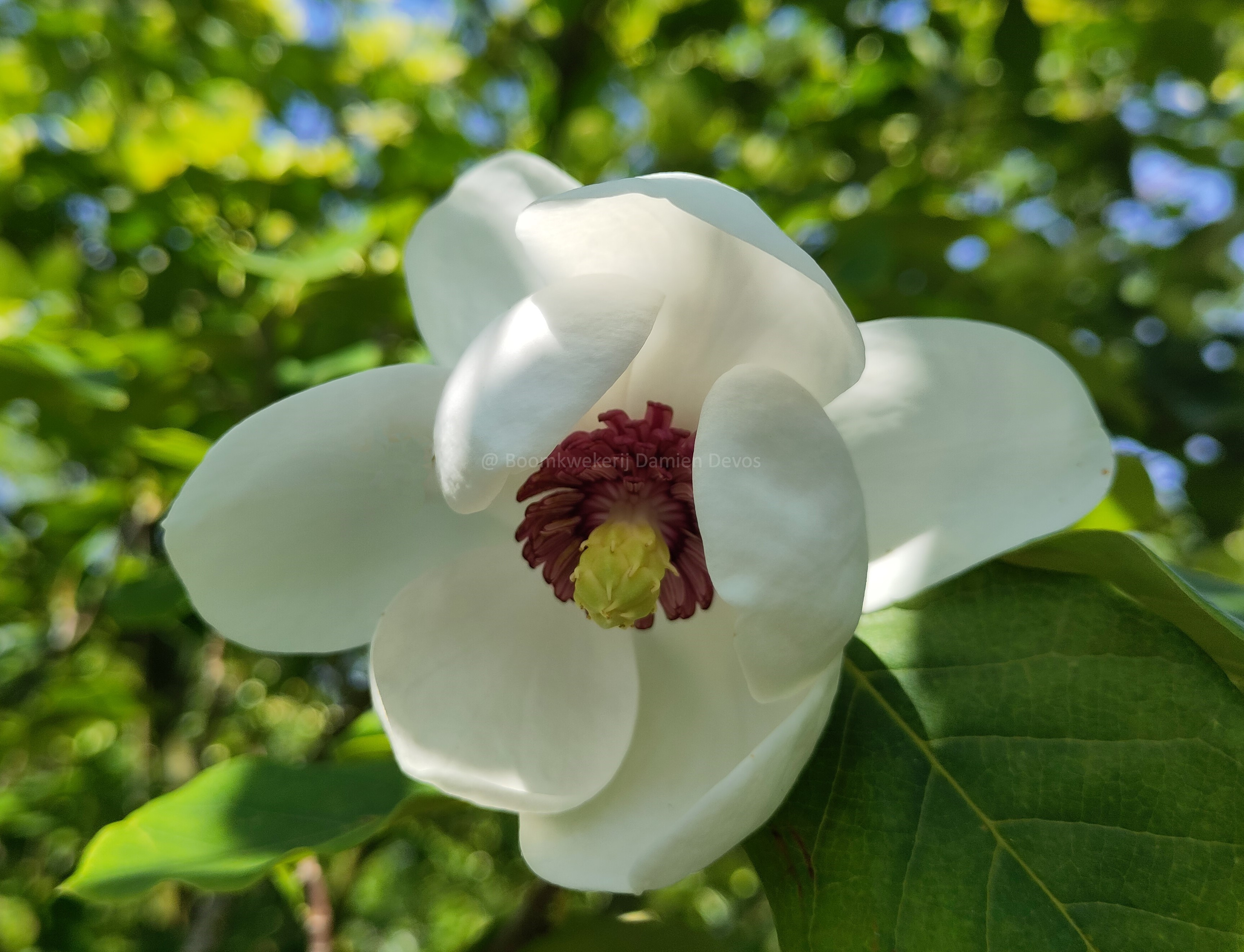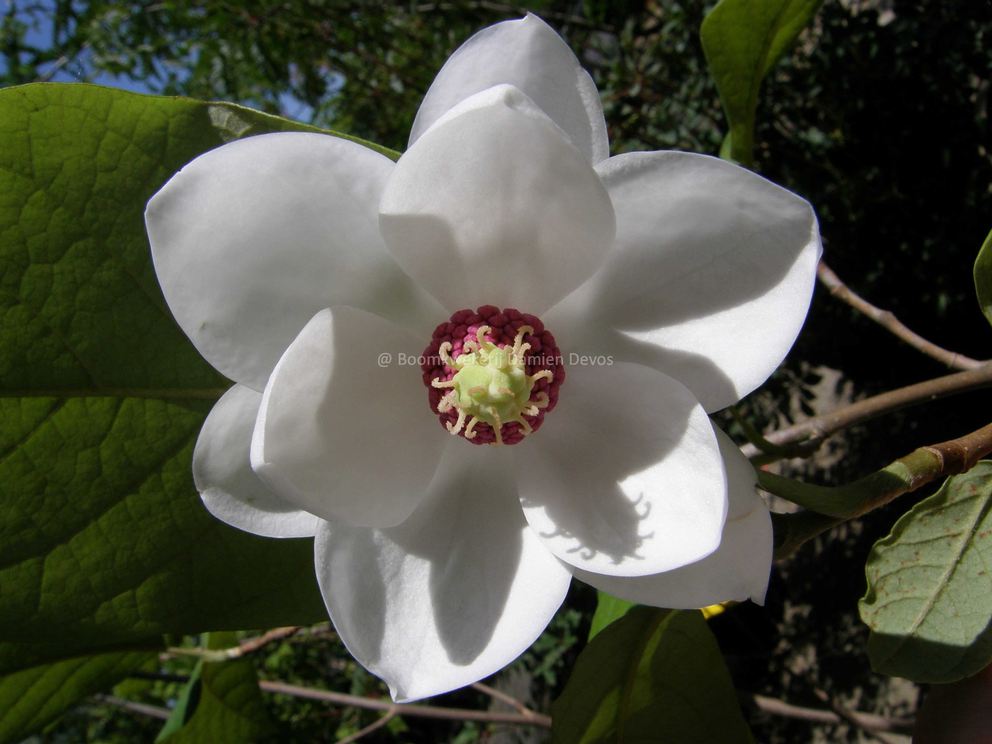 Deze Magnolia sieboldii houdt van humeuze grond en wordt best in de halfschaduw aangeplant.