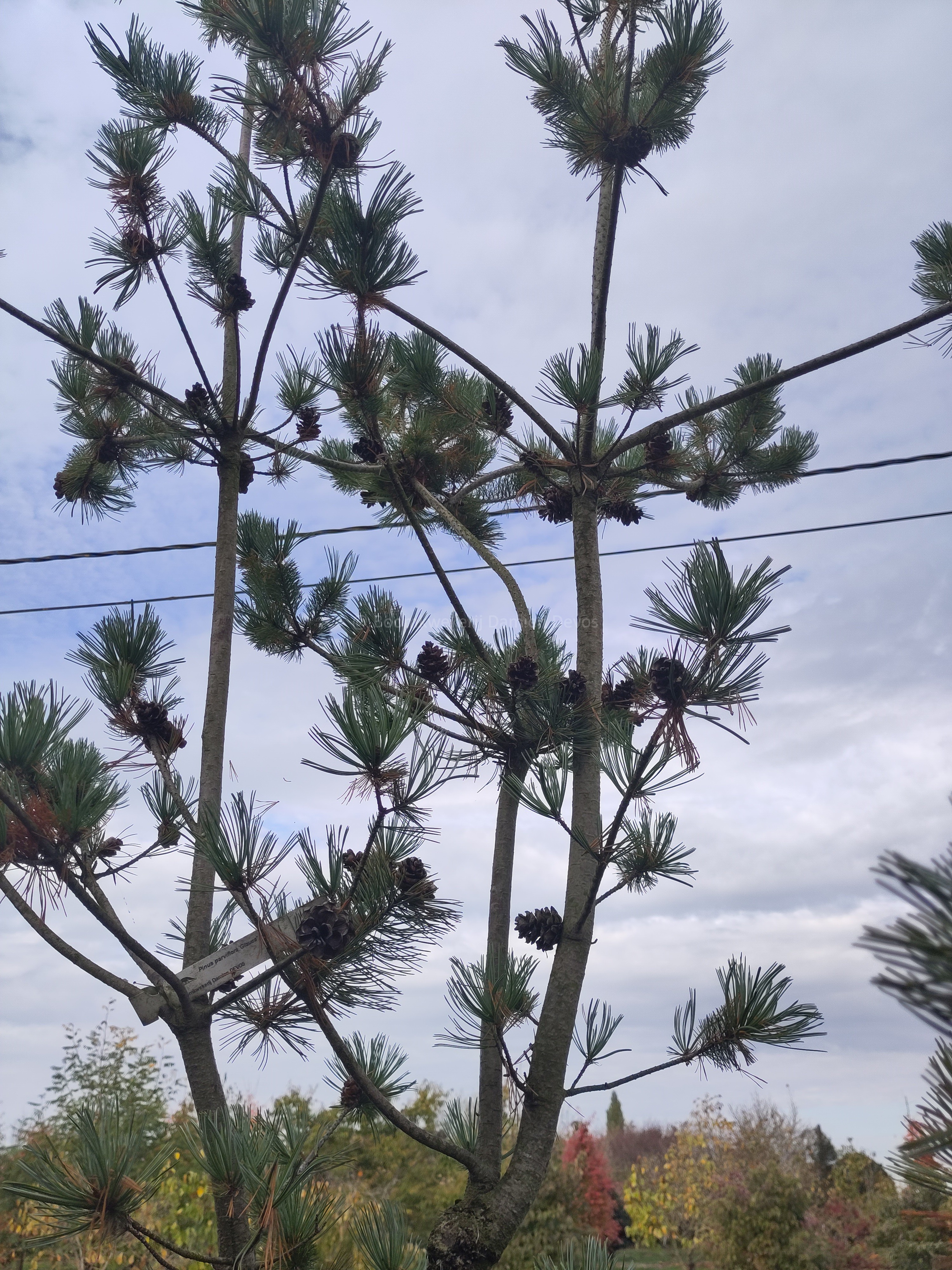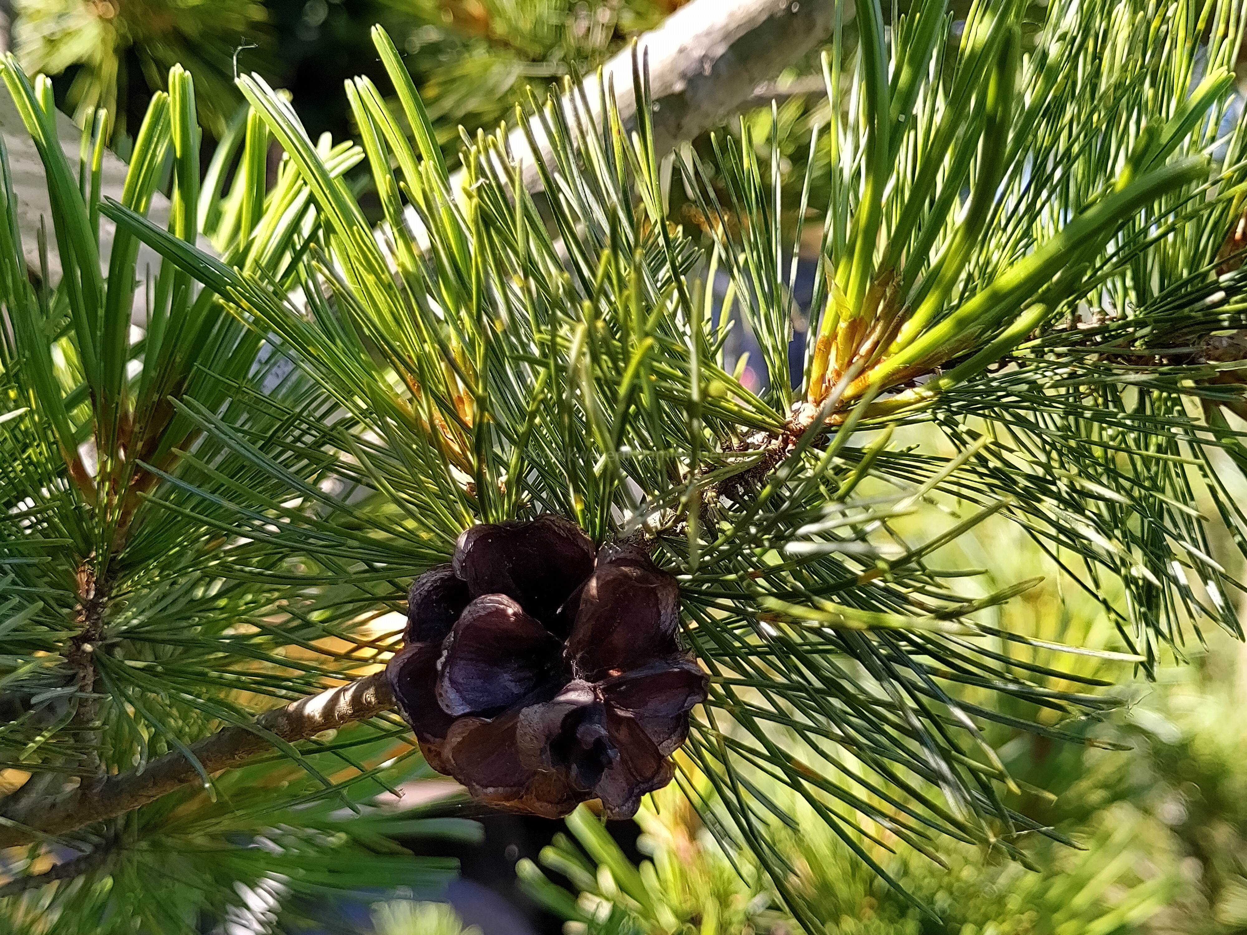 Deze Japanse den valt zeer sterk op door zijn grijsblauwe naalden. De naalden zijn vooral aan de uiteinden van de takken gegroepeerd waardoor de boom een borstelachtige indruk heeft. Zelfs op jonge leeftijd verschijnen de typische kegelvormige vruchten aan de plant. Deze soort is een trage groeier waardoor hij ook geschikt is voor de kleinere tuinen en houdt totaal niet van een veel te vochtige ondergrond.
