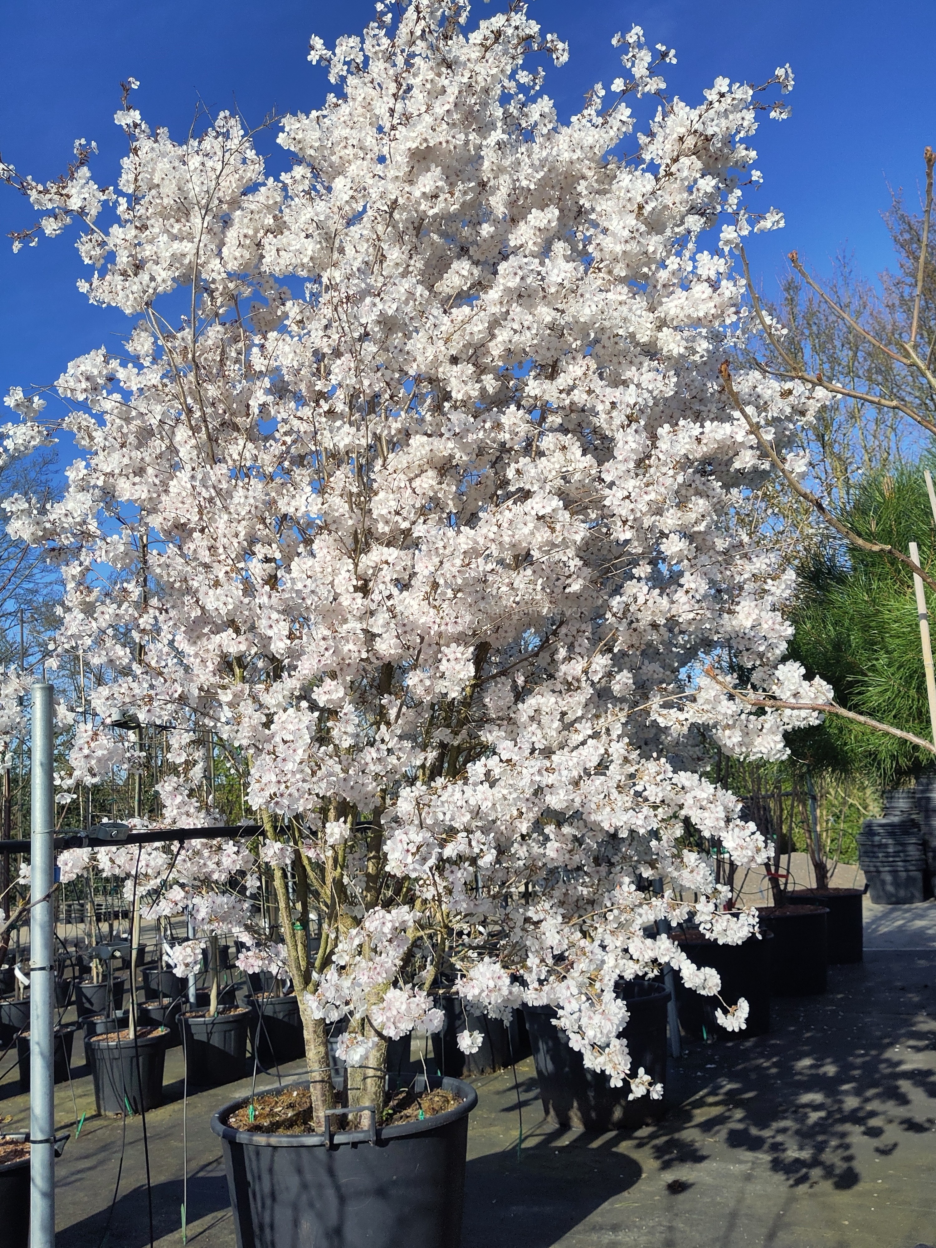 Deze soort sierkers vertoont in het voorjaar een zeer rijkelijke bloei waarbij de volledige boom wit kleurt. De bladeren komen pas aan de boom na de bloei. Bij het uitkomen zijn ze bronsgroen waarna ze frisgroen worden om uiteindelijk in de herfst oranje-rood te gaan verkleuren. De vruchten lijken op kersen maar die komen niet zoveel voor. De plant blijft relatief klein waardoor het goed geschikt is voor kleinere tuinen.