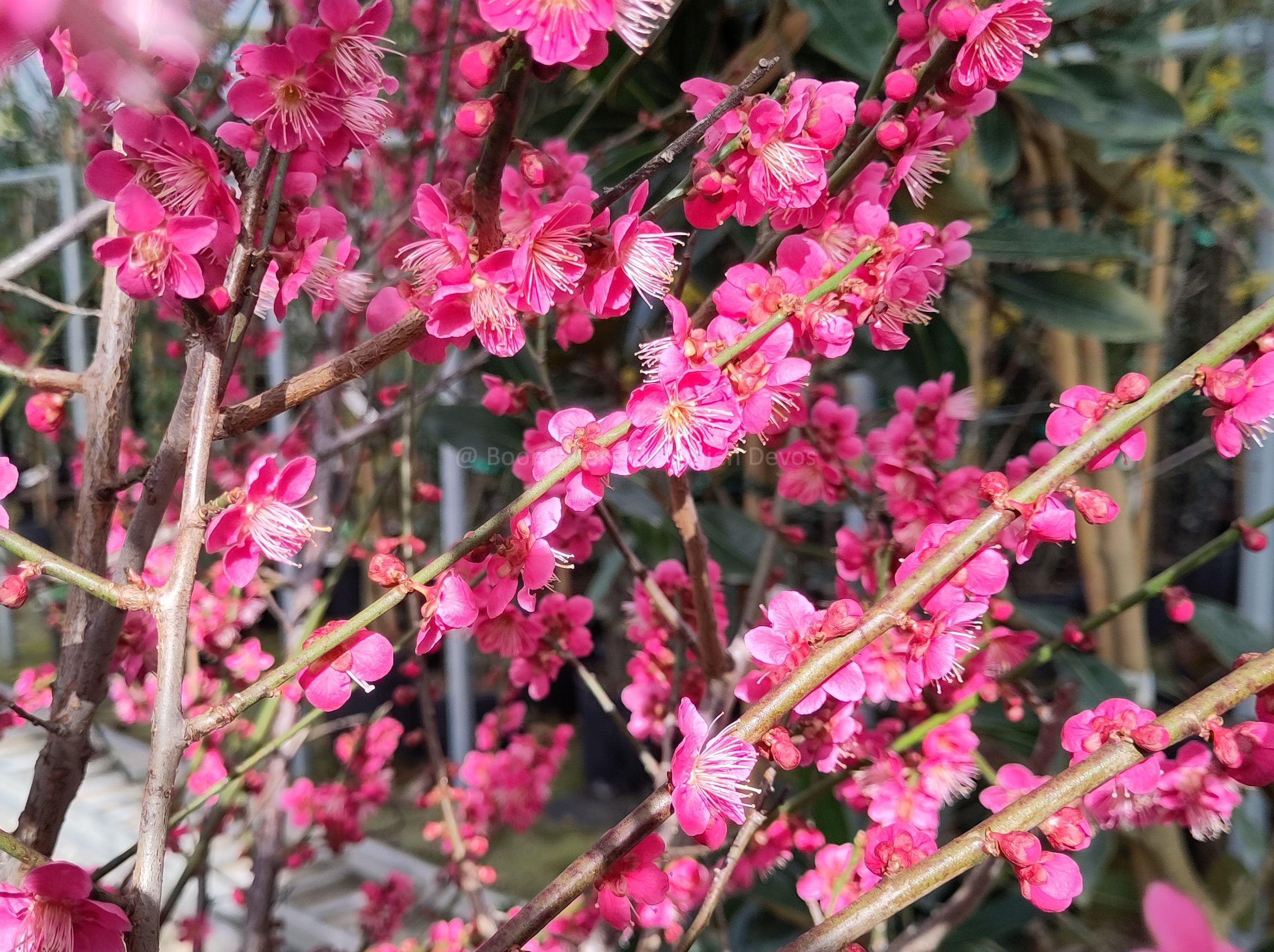 Op het eind van de winter (februari - maart) groeien aan deze Japanse sierabrikoos donkerroze bloempjes (met lange witte meeldraden), die uw wintertuin direct opfleuren!