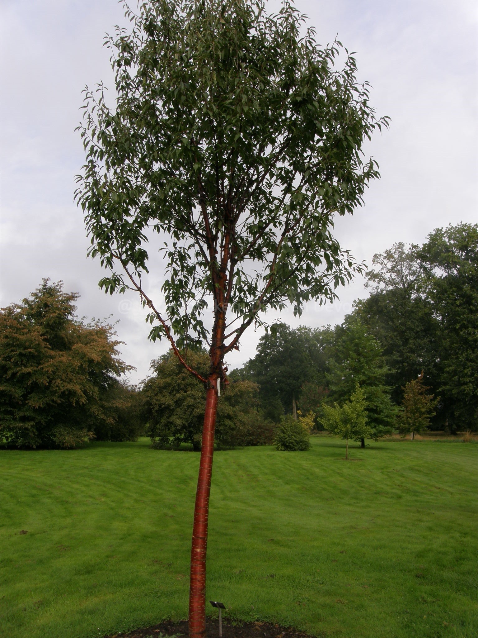 Wordt ook wel berkenbastkers genoemd dankzij zijn opmerkelijke, decoratieve stam. De bruin-rode stam zal mooi gaan afschilferen in stroken. De donkergroene bladeren verkleuren in de herfst mooi geel alvorens ze gaan afvallen. Vanaf april komen er witte bloemen aan de plant die gevolgd worden door kleine rode vruchten. De plant stelt niet veel eisen aan de grondsoort maar verdraagt juist geen natte bodems.