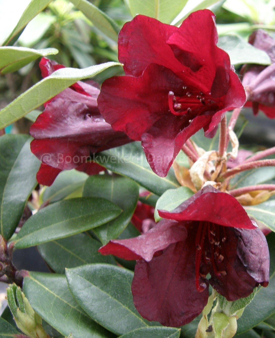 Deze Rhododendron trekt de aandacht met zijn intens dieprode bloemen in mei en juni.