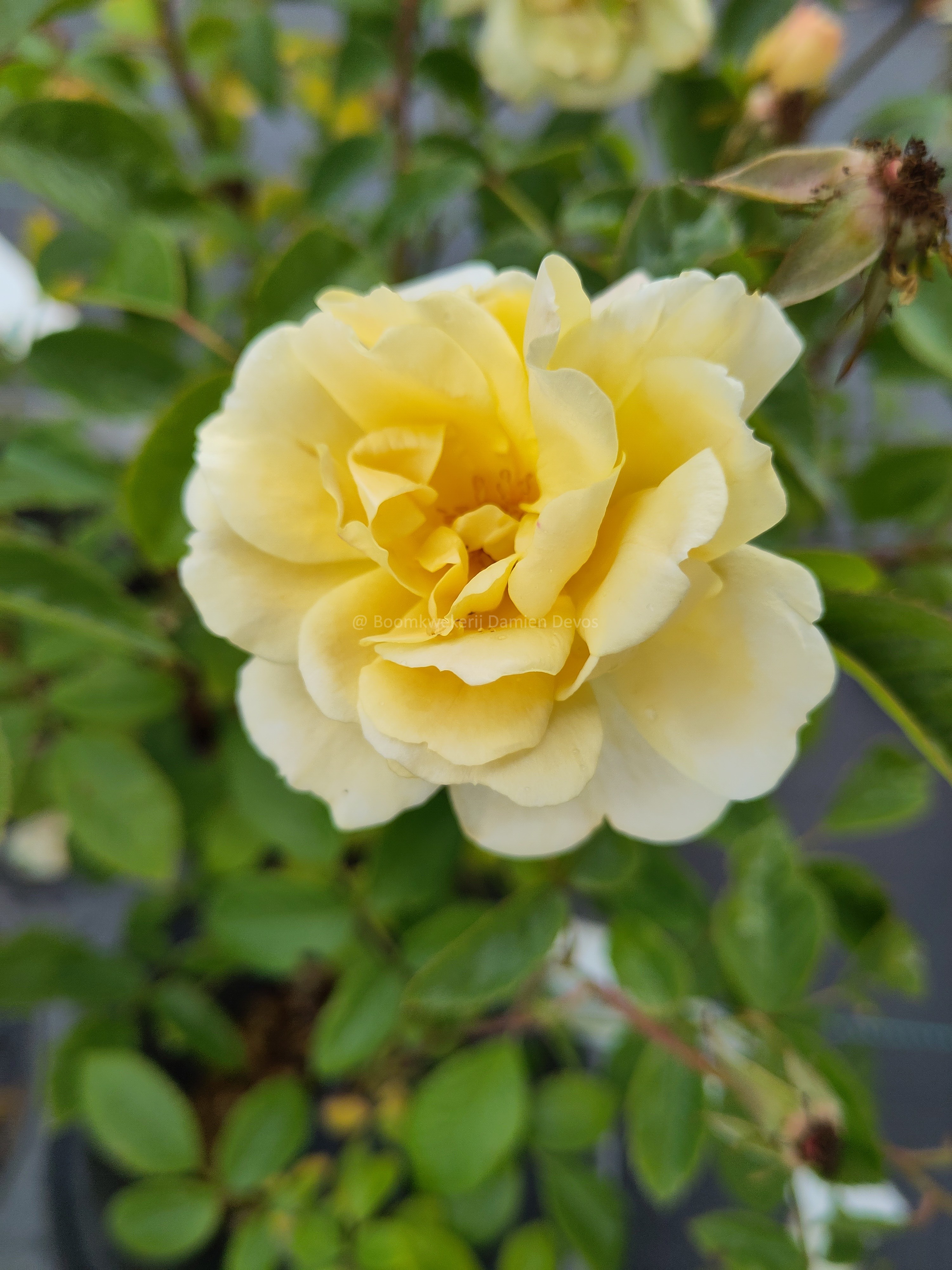 De Rosa ‘Machera’ is een rijkbloeiende heesterroos met grote, halfgevulde bloemen die abrikoosgeel openen en snel naar een zachte roomgele tint verkleuren, met een zichtbaar warm oranje hart. De struik groeit bossig en rechtopgaand met glanzende bladeren en bloeit herhaaldelijk van zomer tot herfst.