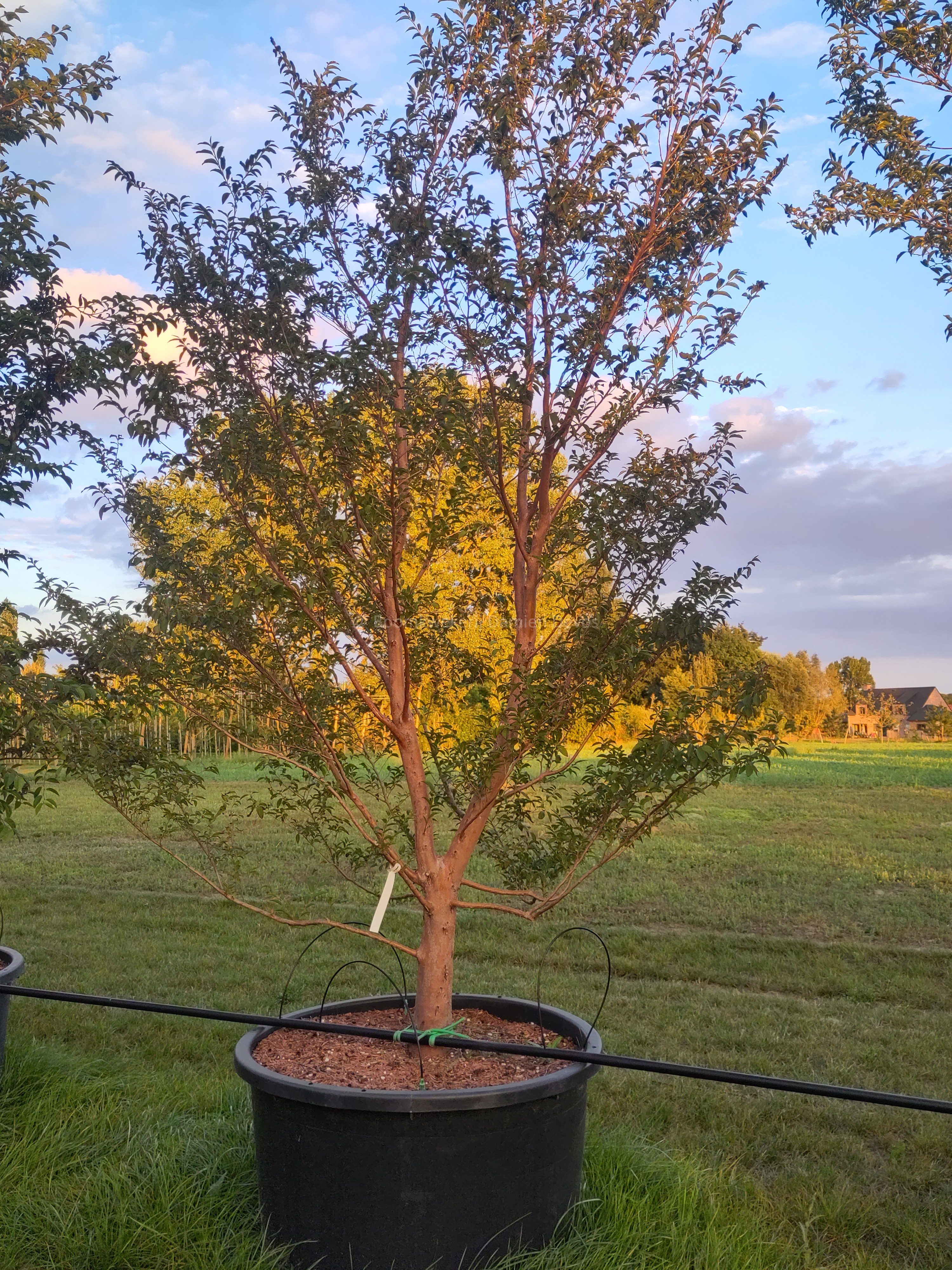Stewartia monadelpha valt direct op met zijn prachtige, opvallende, faschilferende kaneelbruine bast.