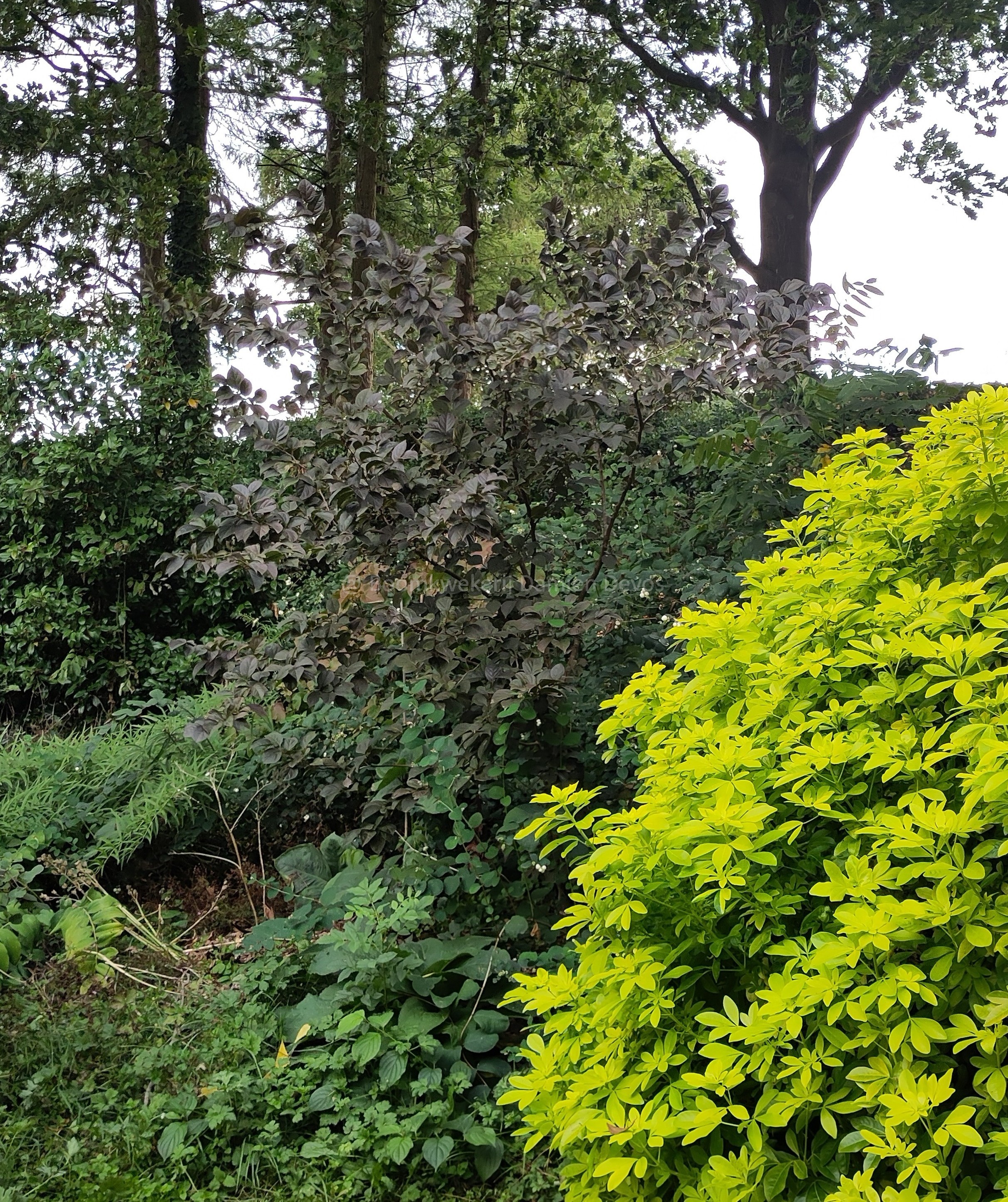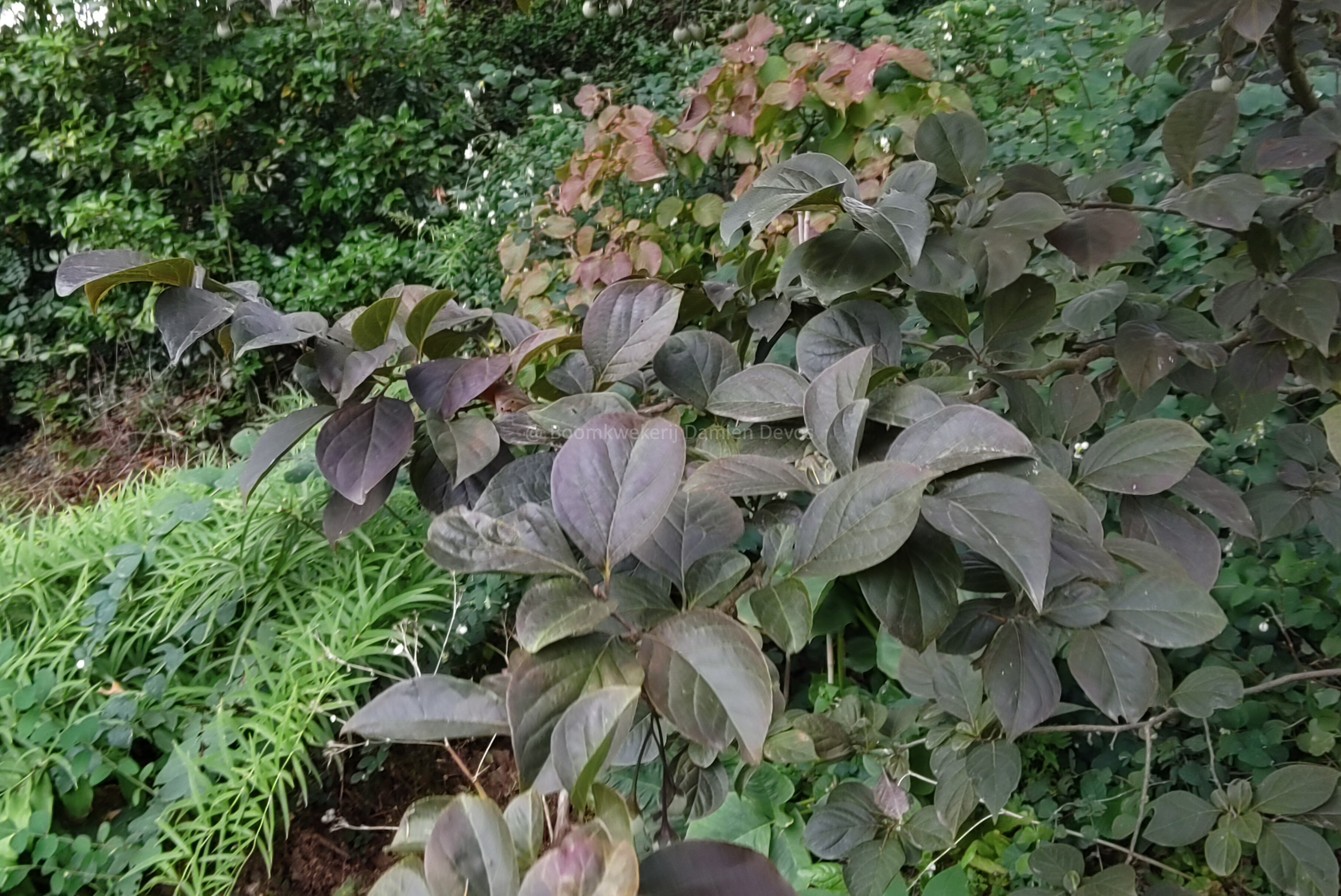 Purple Dress is een zeldzame variëteit waarvan de nieuwe bladeren paars zijn and paarsachtig blijven als de boom een standplaats in volle zon heeft.