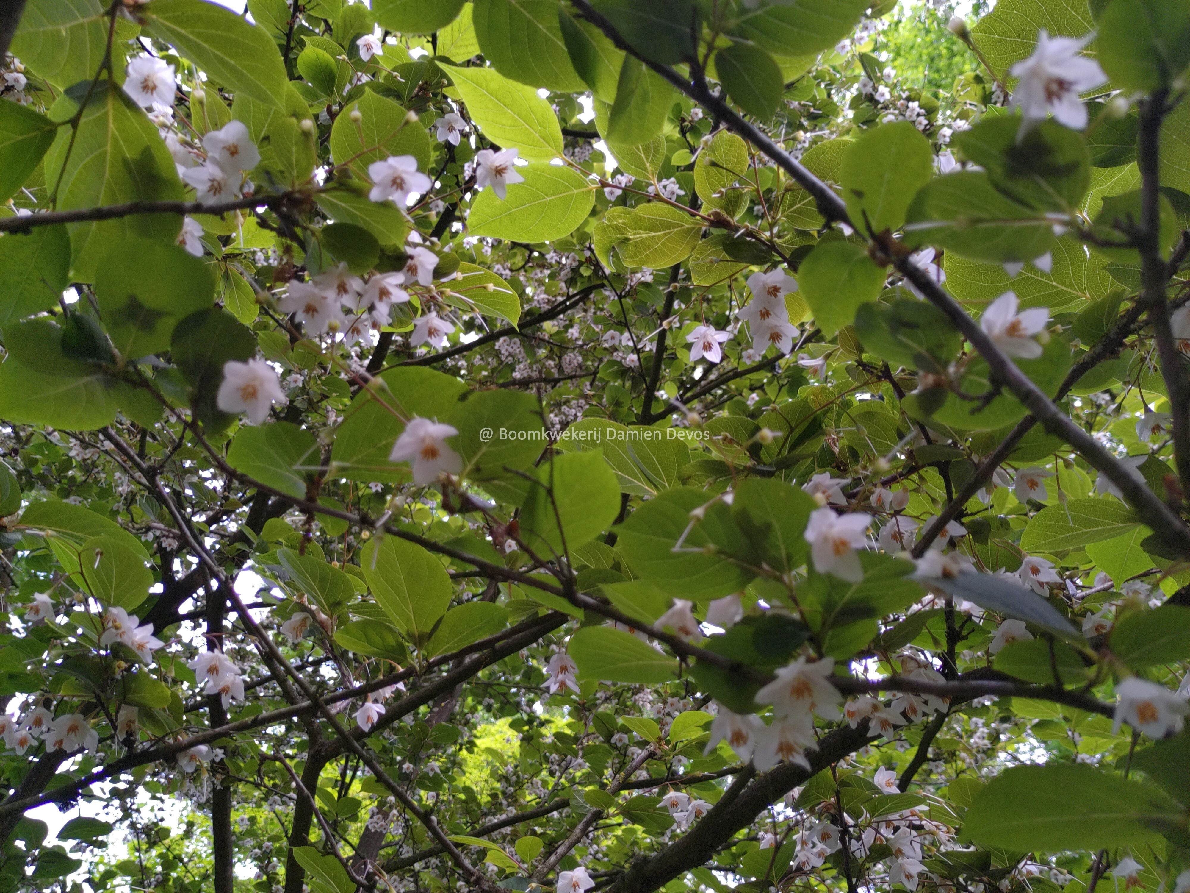 Deze kleine boom, Styrax japonicus 'Wespelaar' is afkomstig uit het prachtige arboretum Wespelaar. Eind mei - juni bloeit deze variëteit overvloedig met witte bloemen. Het blad is eerst groen maar wordt purper - brons.