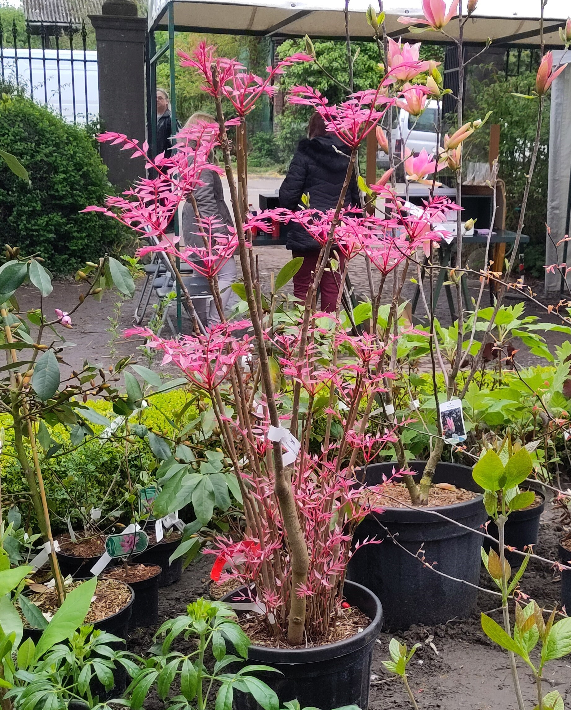 Het geveerde blad van Toona sinensis 'Flamingo' is oranje - roze bij het uitlopen. Dit jonge, roze schot is zelfs eetbaar! In de herst krijgt deze Toona een geel blad.