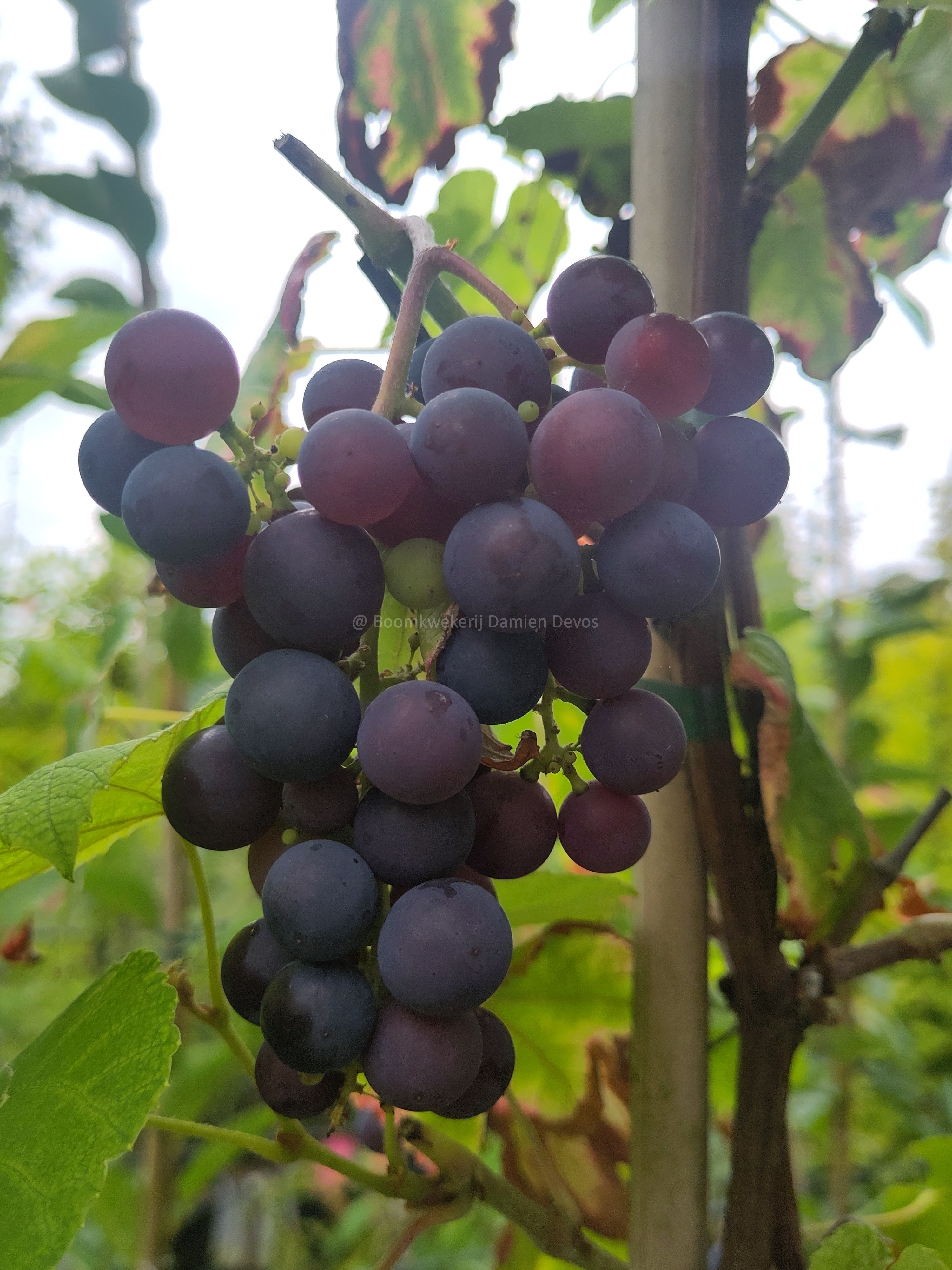 De Vitis 'Buffalo' is een bladverliezende, klimmende wijnstok die bloeit in het voorjaar. Van eind augustus tot september rijpen de middelgrote, blauw-zwarte bessen en zijn deze klaar voor consumptie. De smaak is zoet en aromatisch.